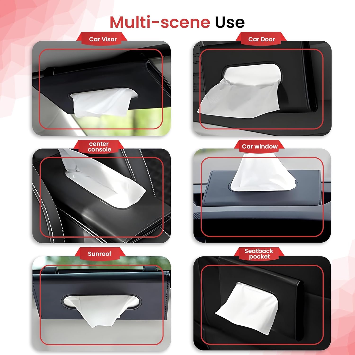 [CONVENIENT & VERSATILE USE]- AUTOGUYS versatile tissue holder offers quick access to tissues, easily attach your sun visor, seat back, door pocket. This is an essential item in your car accessories collection. Designed for ultimate convenience, it adapts to various locations within your car. Its flexible application enhances the overall functionality and usability of your vehicle’s interior, adding to your car accessories interior.