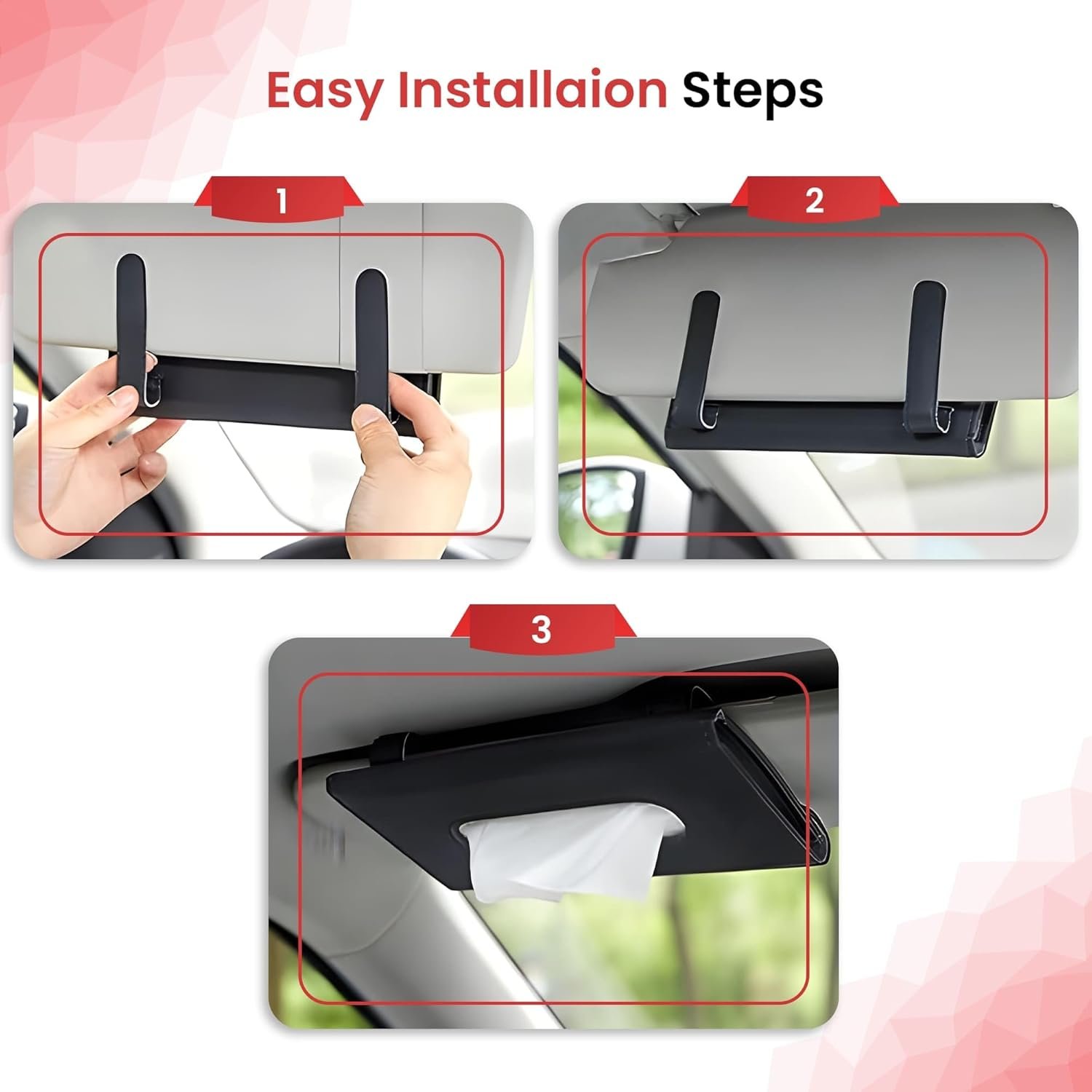 [INCLUDES TISSUES IN BOX]- AUTOGUYS Tissue Holder for Car comes with a pack of car tissues included, ensuring you’re always prepared for unexpected messes. This thoughtful inclusion makes it a practical addition to your car accessories interior. The convenience of having tissues readily available without hassle. This saves you the trouble of purchasing tissues separately, adding to the overall functionality of your Visor Tissue Holder.