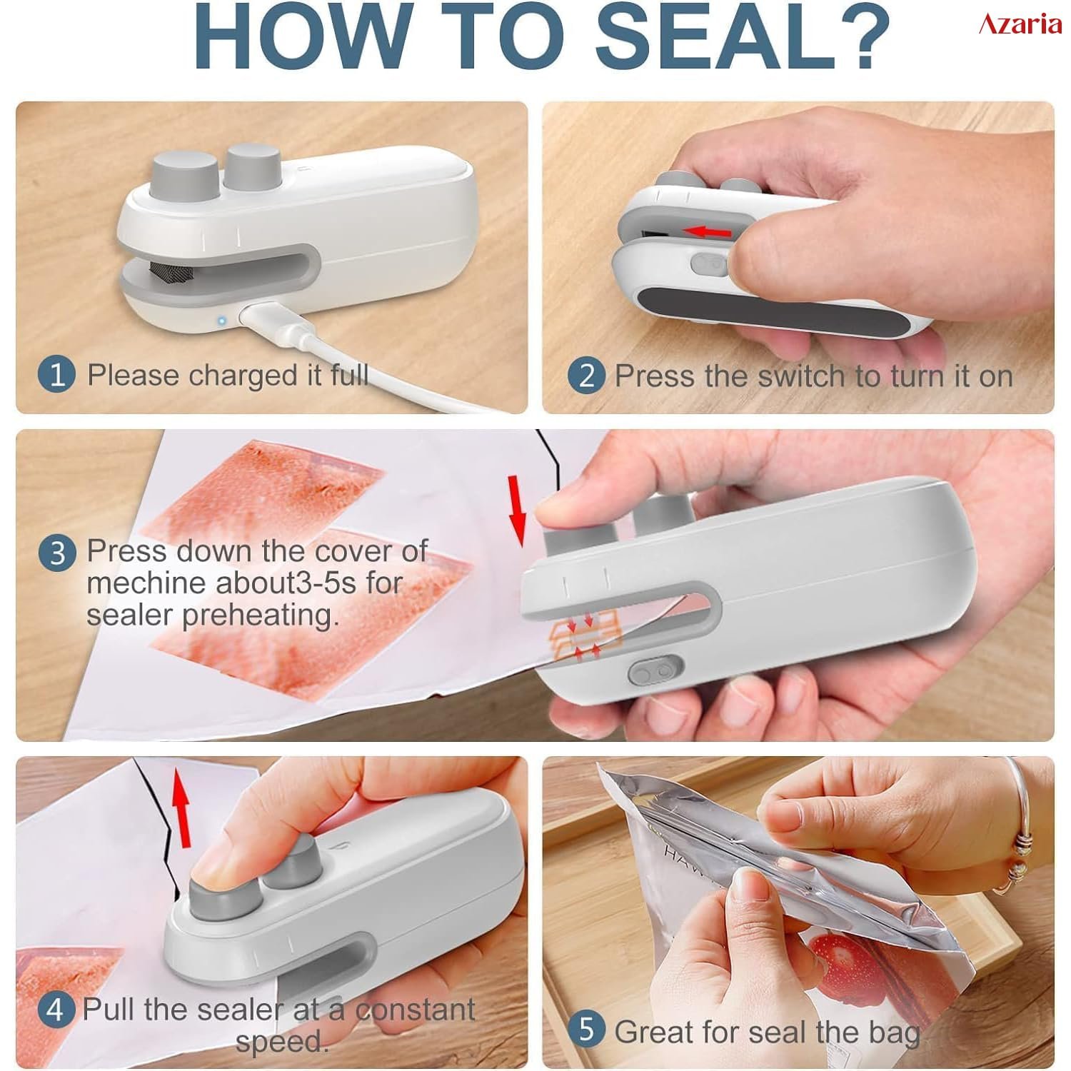 Azaria packet sealer machine can reseal a variety of plastic bags, from chips and snacks to mylar and vacuum bags, keeping food fresh. While perfect for most bags, it’s not suitable for wrap, cellophane, kraft paper, or thin storage bags. A smart gadgets and portable sealer for plastic bags!