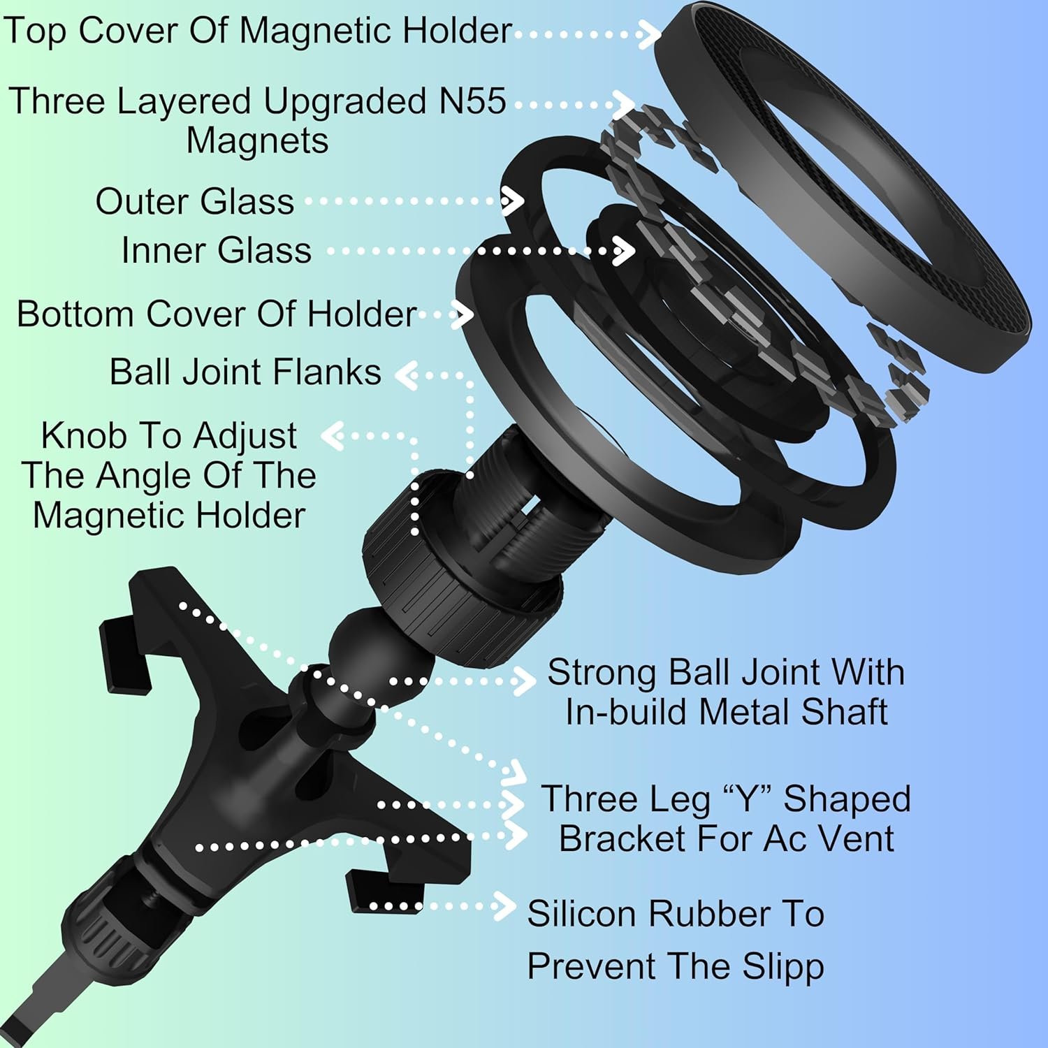 ✅【UPGRADED VERSION OF EXISTING MOBILE HOLDERS IN THE MARKET】The Magnet Bar Used In This Car Mount Magnetic Holder Is N55 Which Is A Upgraded Version Of The N52 Magnet Which Is Trending In The Market Now. Other Brand’s Magnetic Car Mount Used Plastic Clip In There Bracket But We Are Using Metal Clips In The Y-shaped Bracket Which Makes It To Hold The Whole Assembly Of Ac Vent Mobile Holder For Car Without Breaking Of The Clip. Its Look Expressed As Mini Magnetic Car Mount Phone Holder