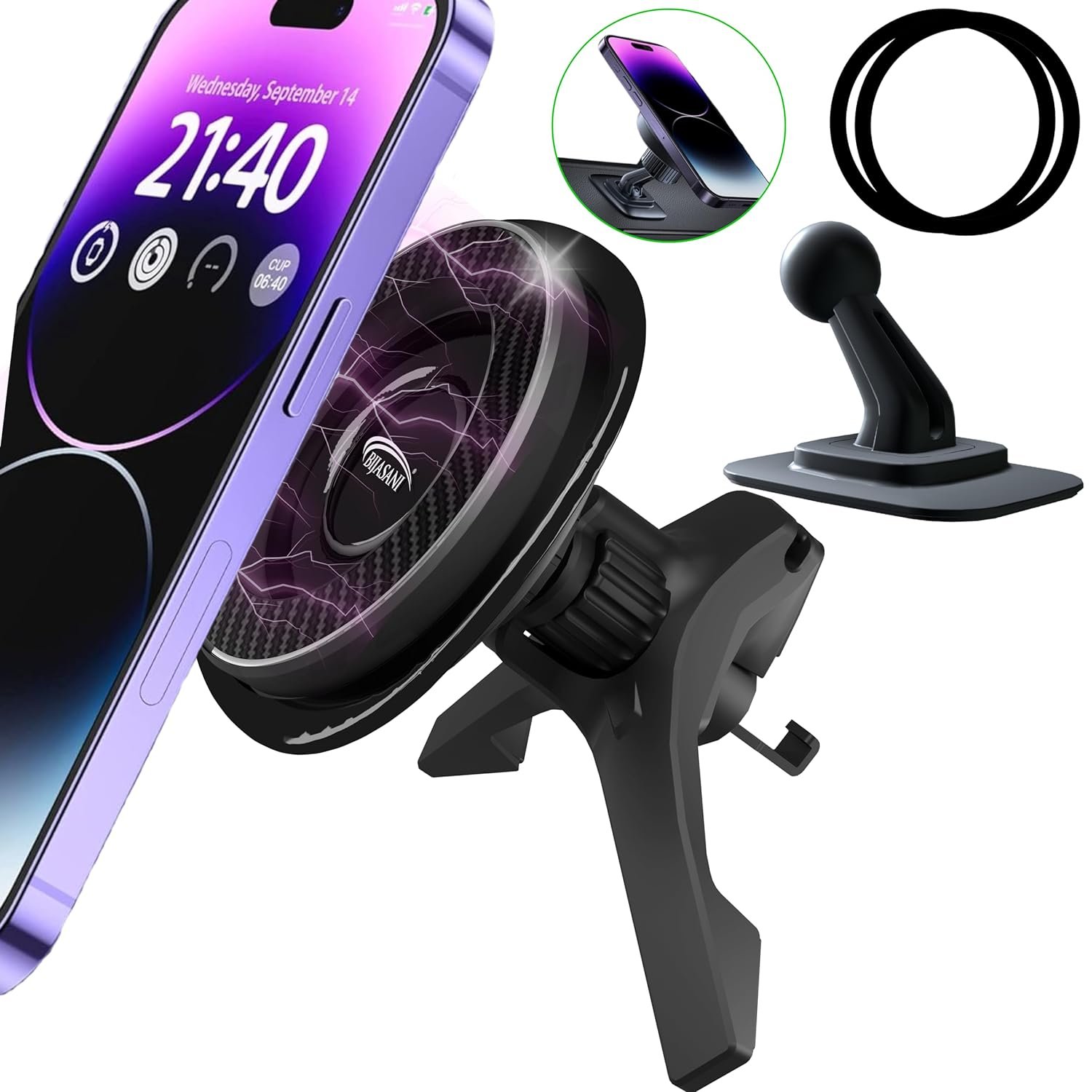 ✅【EASY INSTALLATION AND EASY TO USED】The Magnet Mobile Holder Installation Is So Simple That You Have To Only Adjust The Y-shaped Bracket To Ac Vent And Attach The Magnet To It And Also Car Mobile Magnetic Holder Comes With Instruction Manual. If You Are Using The Conventional Car Accessories Mobile Holder You Will Have To Always Sets The Phone To The Phone Holder And Remove The Phone Using Button Or Something But By Using Magsafe Ring Magnet Makes Easy To Attach And Remove Your Phone.