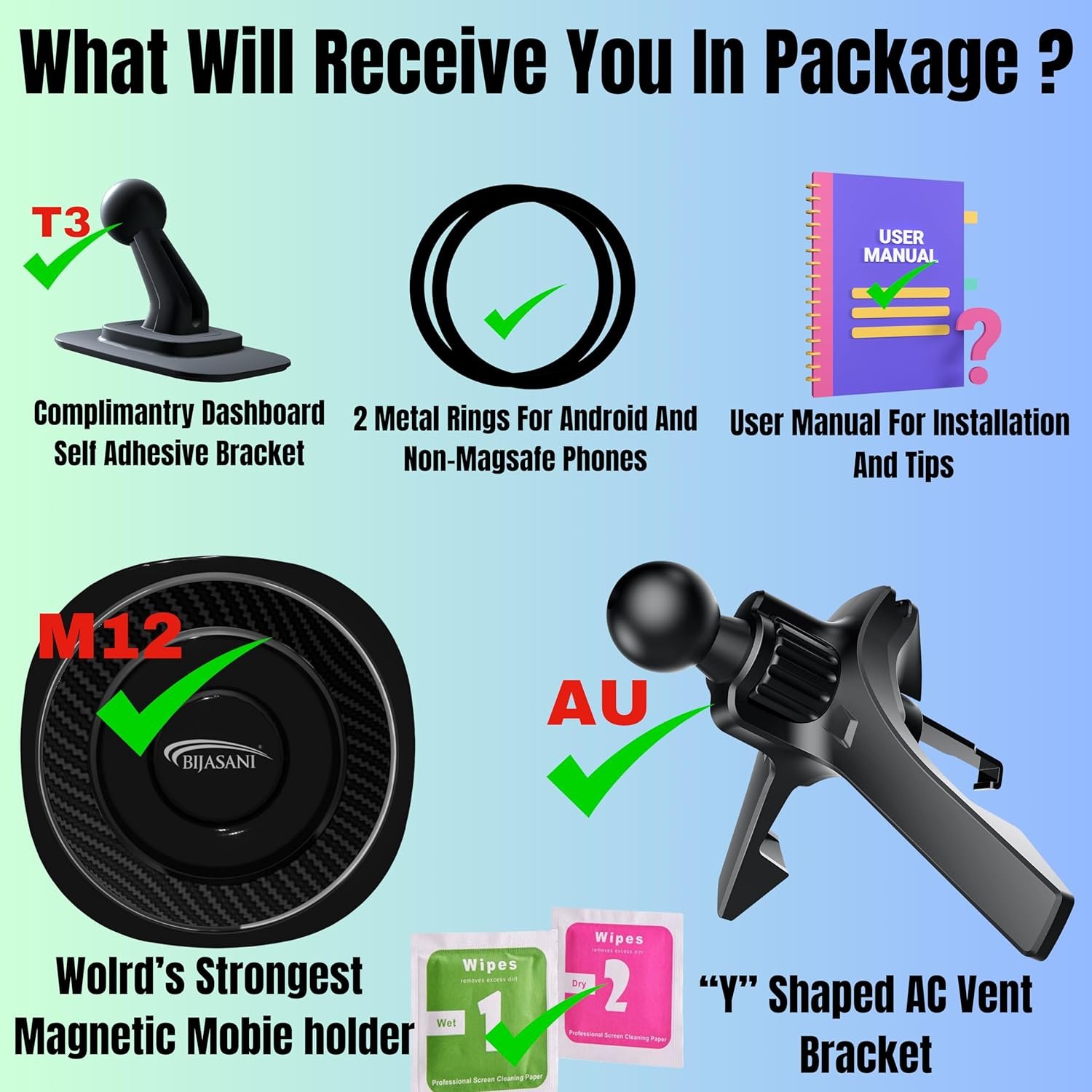 ✅【FITS ALMOST ALL CAR AND MOBILE MODELS】This Mobile Magnet Holder Comes With Comes With Two Different Brackets First One Can Be Used In Air Vent (y-shape Bracket) And Other One Can Be Attach To Car Dashboard Using In-build 3m Tape. Our Magnetic Car Holder Is Fits Almost All Mobiles Includes Iphone 14 Pro, Iphone 13 Pro Max And Other Iphone And Android Devices. Our Car Phone Holder Is Compatible With Xuv 700 Accessories, Swift Dzire Car Accessories All, Scorpio N Accessories And Other Cars