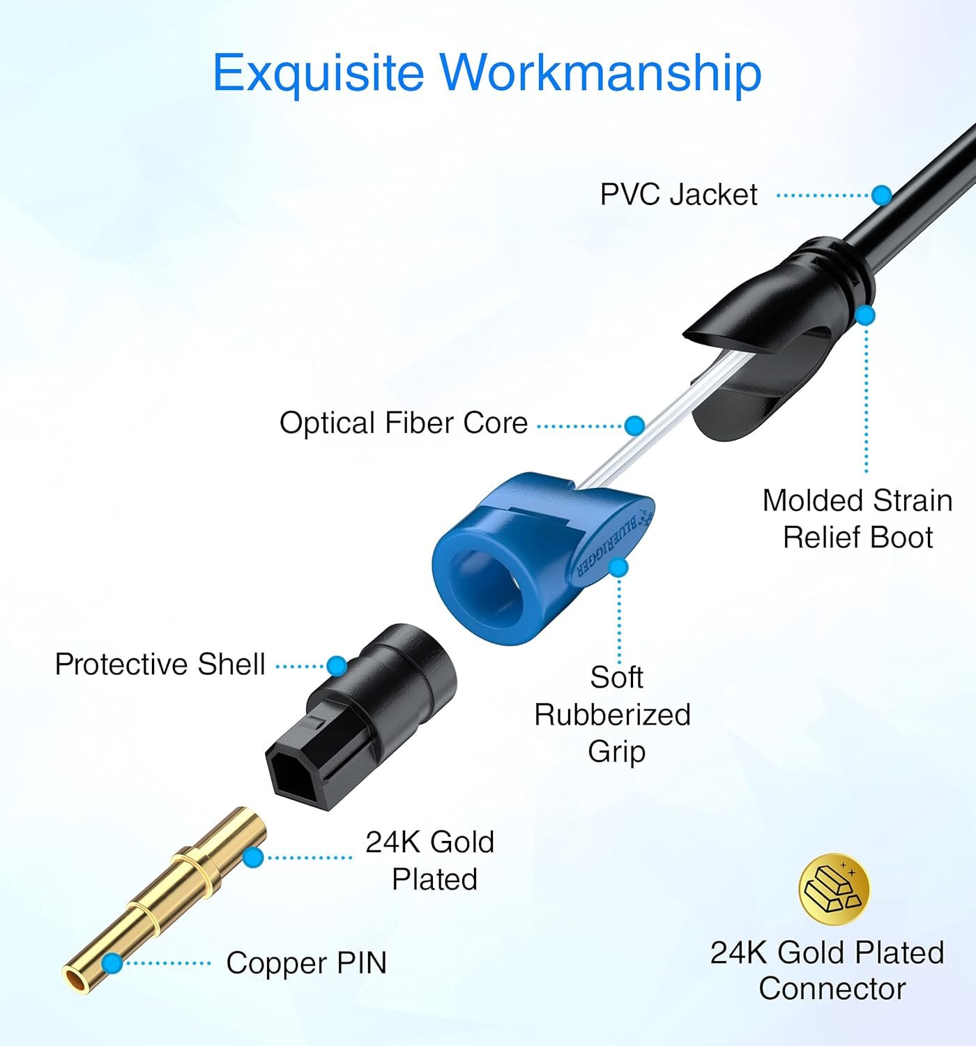 ➤Solid Construction: Precision-polished 24K Gold plated optical connectors for optimal signal transfer and corrosion resistance. This protects against RFI & EMI interference. The slim connector design, allows for a snug and easy fit in the device
