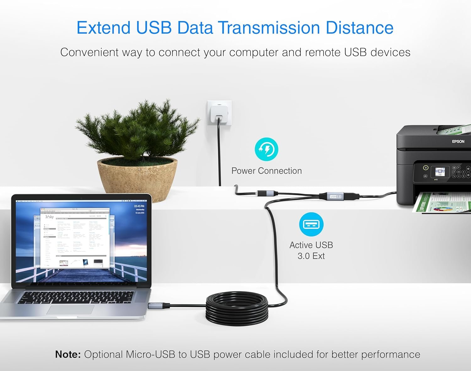 USB 3.0 ACTIVE EXTENSION CABLE: Easy way to extend your USB connection to the computer (Mac/PC) for use with VR Headsets, Game Consoles, USB Flash Drive, Hard Drive, Card Reader, Mouse, Keyboard, Printer, Scanner, Camera and other USB peripherals
