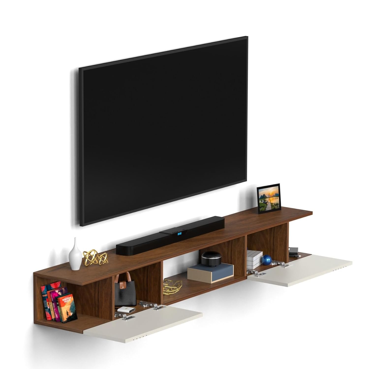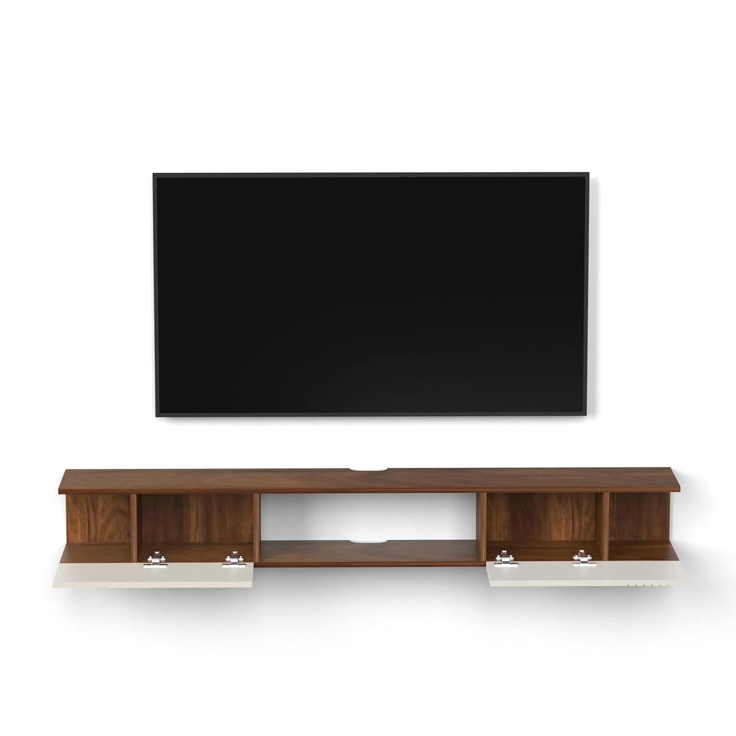 Color: Brown Maple & White, Wall Mounted TV Unit, TV Size – Upto 60 Inches, Shelves for Storage