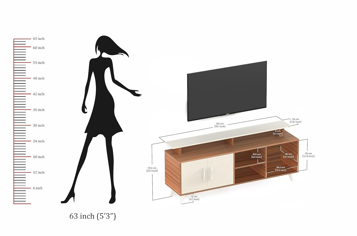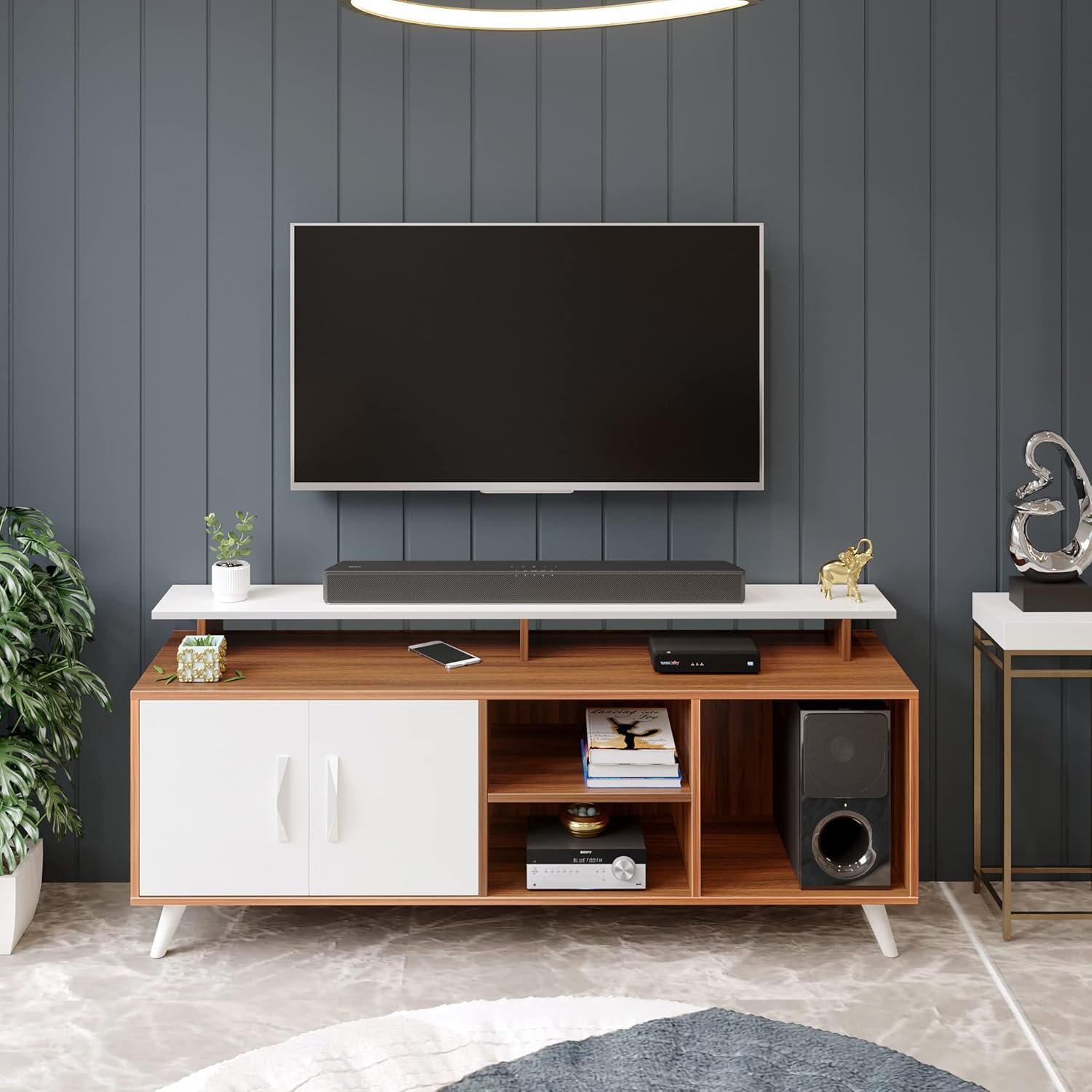Color: Walnut & White || Floor Standing TV Unit with Two closed Shelves for Storage || TV Size : Upto 55 Inches