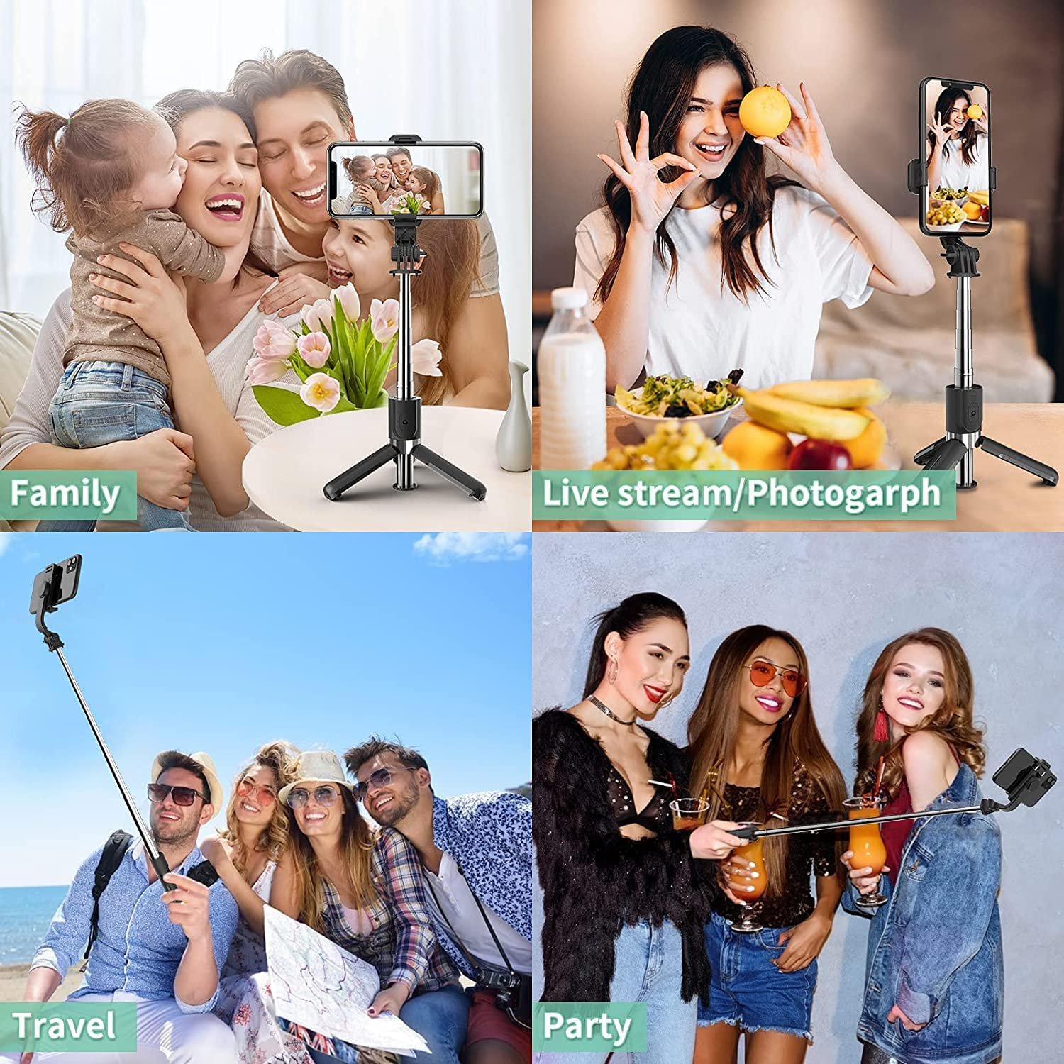 3 in 1 selfie stick with tripod, it is easy to take selfie-photography or group photos, suitable for parties, travel, hiking etc. Also you can use it as a quick and easy tripod.