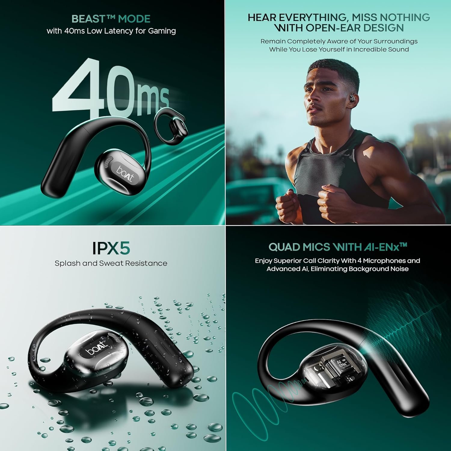 Air Conduction Technology: Embrace enhanced listening comfort with the boAt Airdopes ProGear OWS Earbuds. Boasting Air Conduction technology for audio transmission, these earbuds ensure minimal audio leakage while their open-ear design lets you enjoy music without blocking the ears.