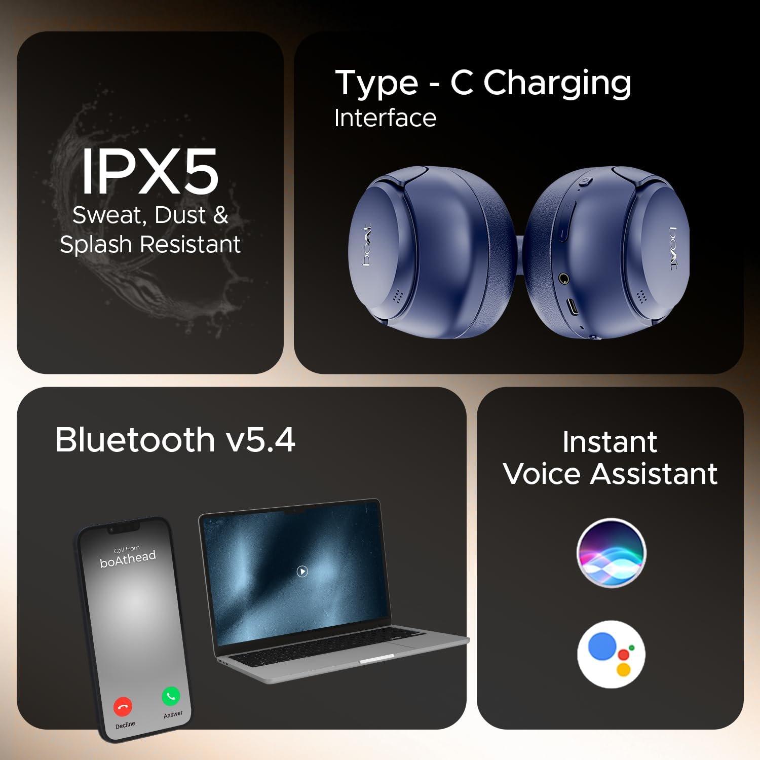 Voice Assistant: Activate Google Voice Assistant or Siri with these headphones and complete tasks like adding a reminder, opening apps, setting alarms, etc., using voice commands.