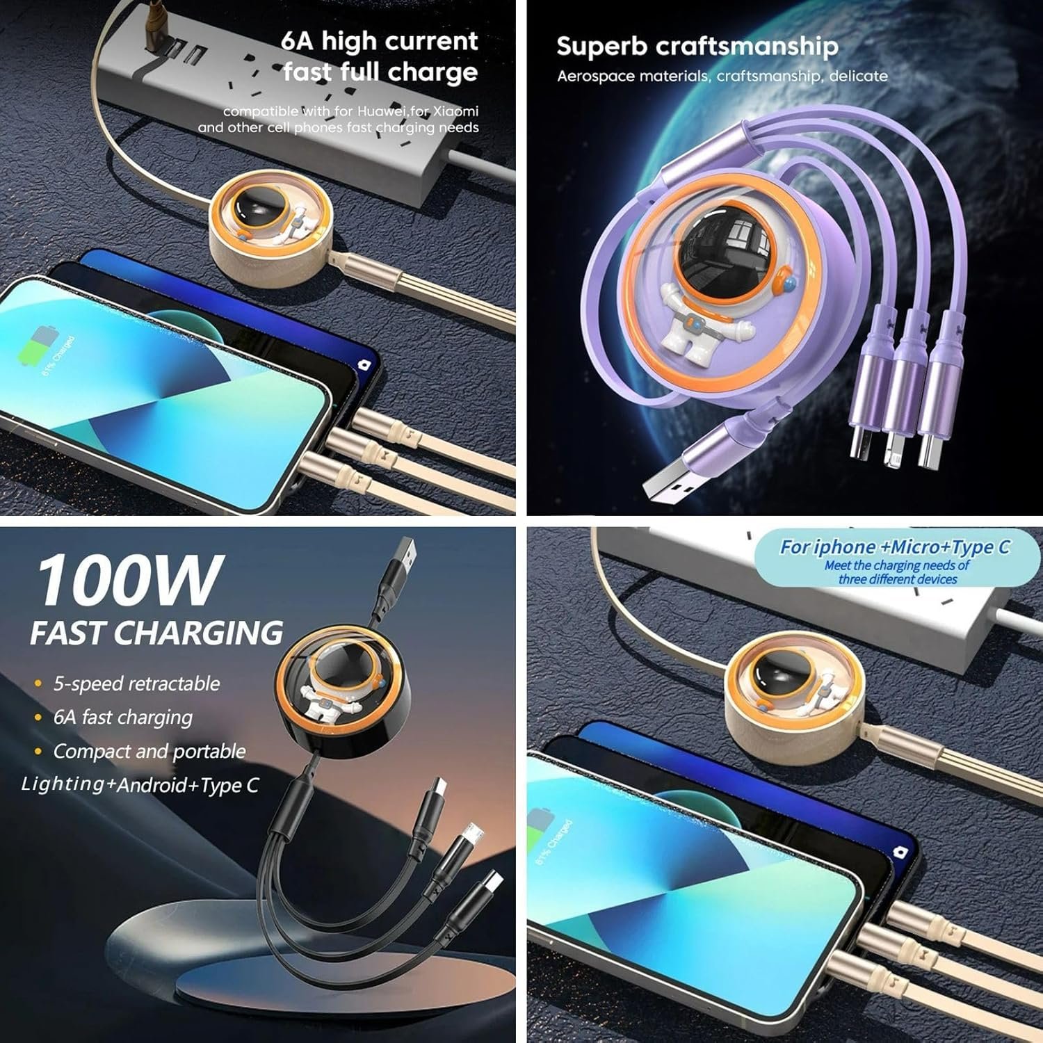 【3-in-1 Retractable Charging Cable】The USB cable has 5 levels of length adjustment allowing you to change the length as needed. USB 3 in 1 Cable is very easy to fold and place in your laptop bag, handbag, pocket etc.