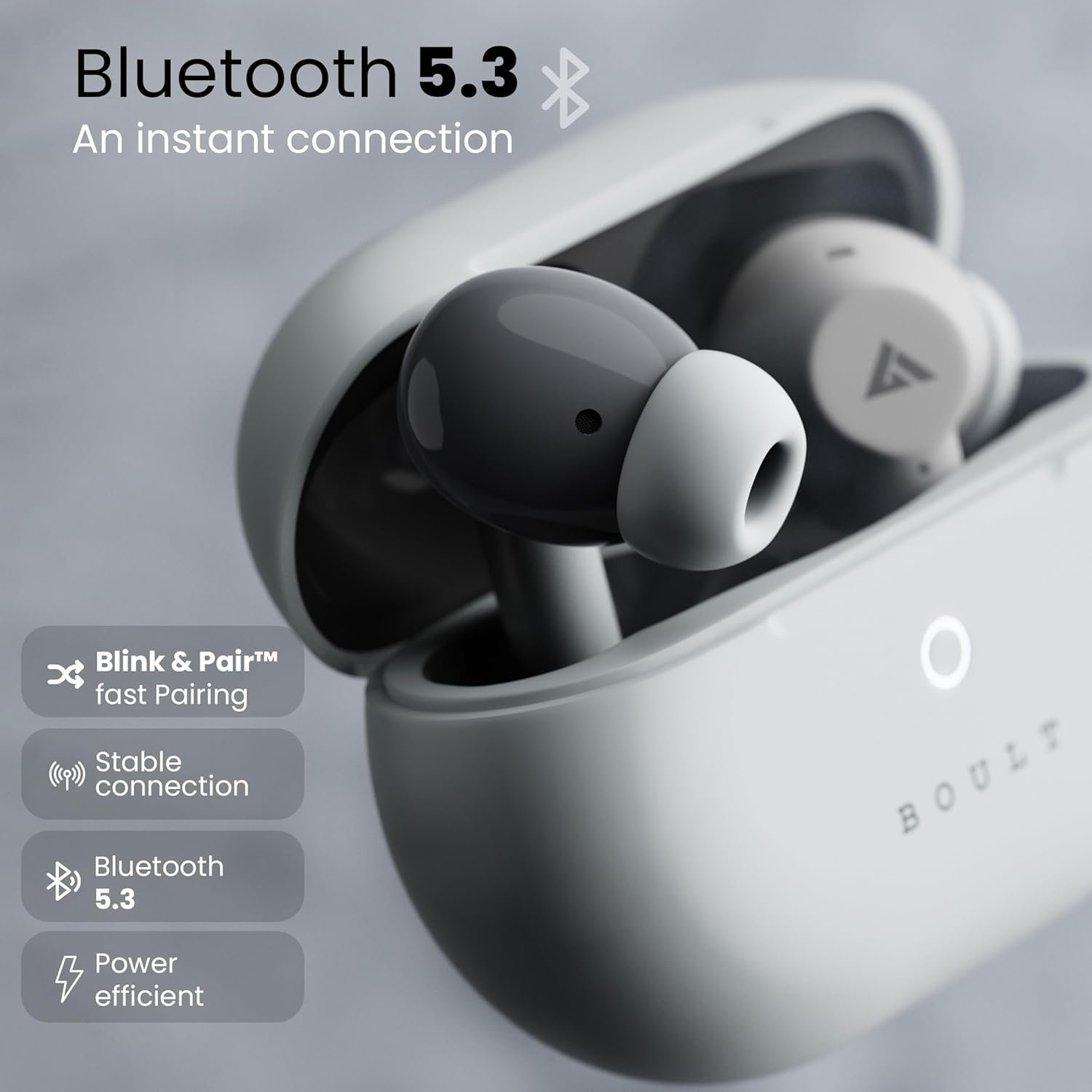 Boult Audio K40 True Wireless in Ear Earbuds with 48H Playtime, Clear Calling 4 Mics, 45ms Low Latency Gaming, Premium Grip, 13mm Bass Drivers, Type-C Fast Charging, BTv 5.3 Ear Buds TWS (Ivory White)
