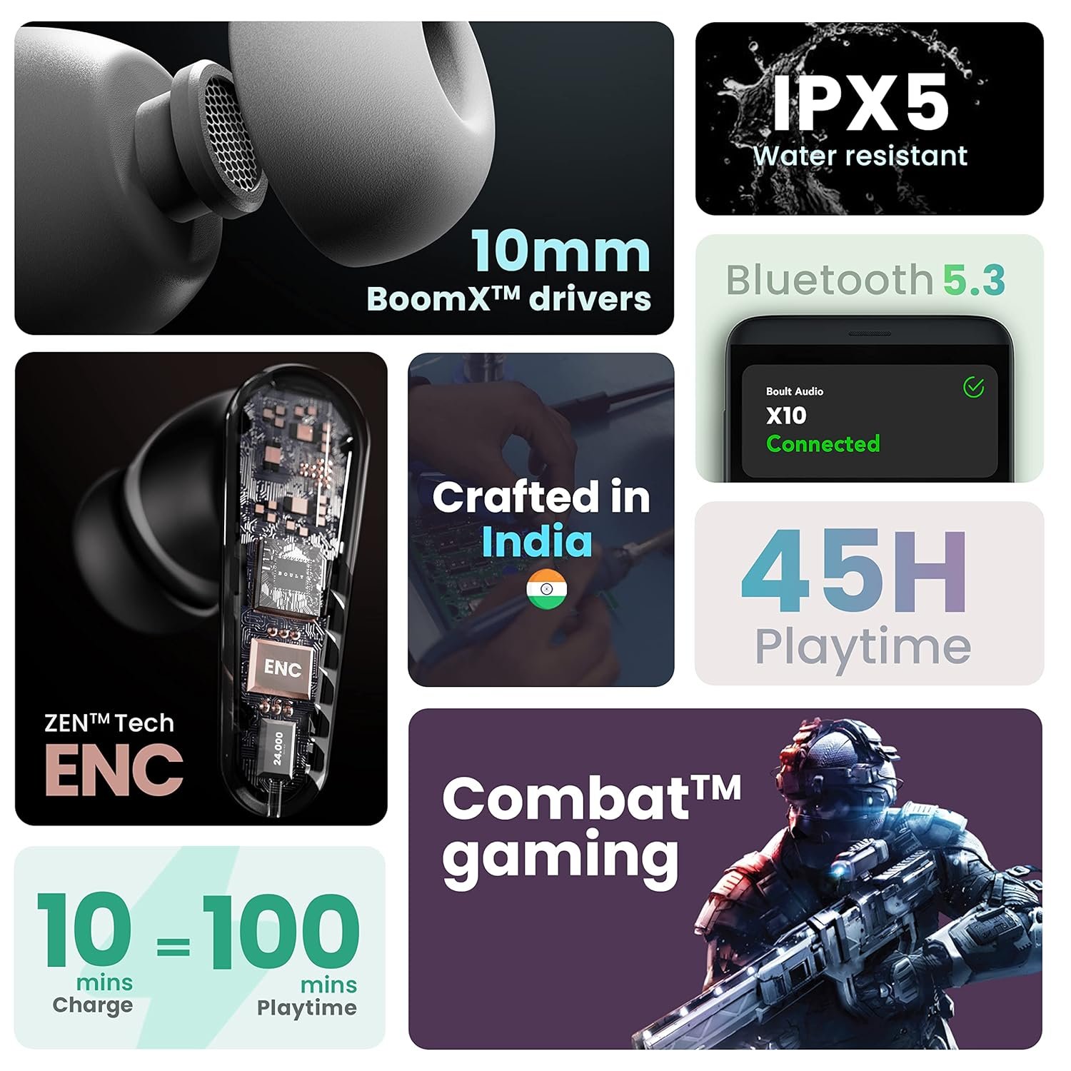Be the first to review “Boult Audio X10 True Wireless in Ear Earbuds with 45H Playtime, 40ms Xtreme Low Latency Mode, ENC Mic, Made in India, Type-C Fast Charging, 10mm Bass Drivers, IPX5, Bluetooth 5.3 Ear Buds (White)”
