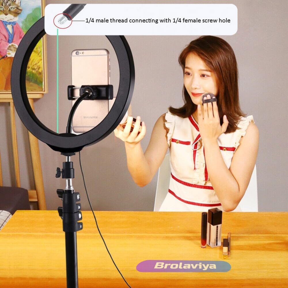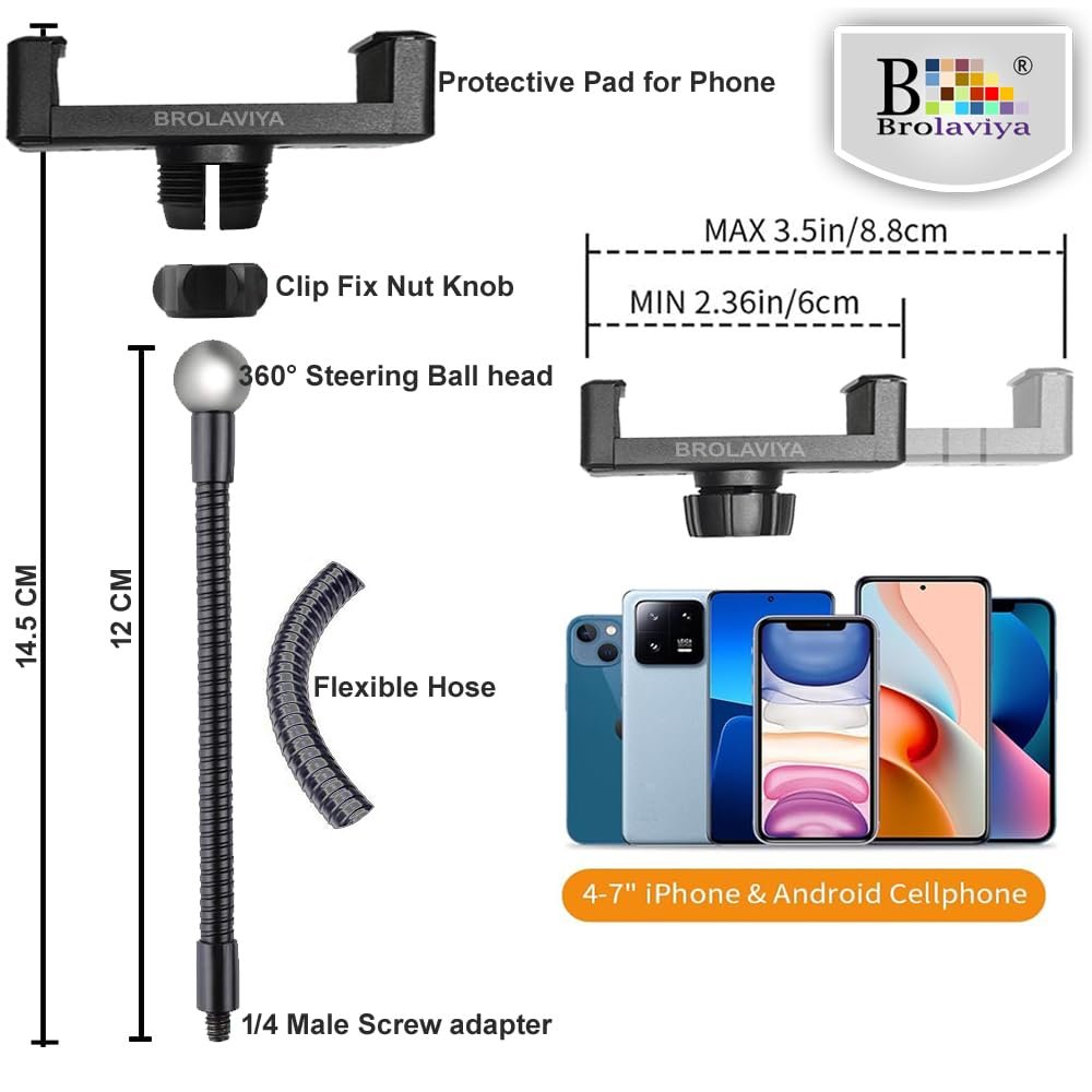 BROLAVIYA 2 Pcs Flexible Hose Mobile Phone Gooseneck Clip with 1/4 Male Thread for LED Ring Light