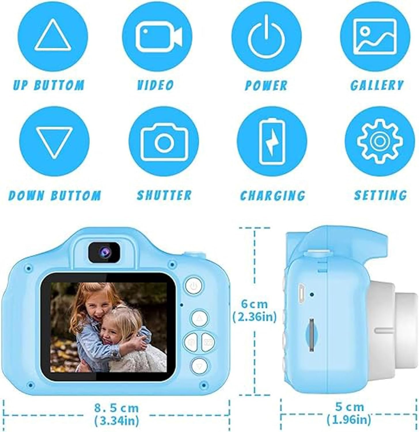 Memory: Our kids camera offers built-in storage for countless memories and the option to expand with a microSD card. Plus, it effortlessly connects to a computer via USB for easy photo sharing.