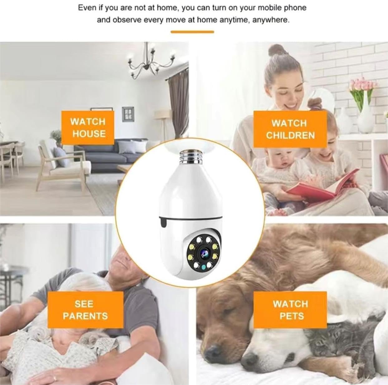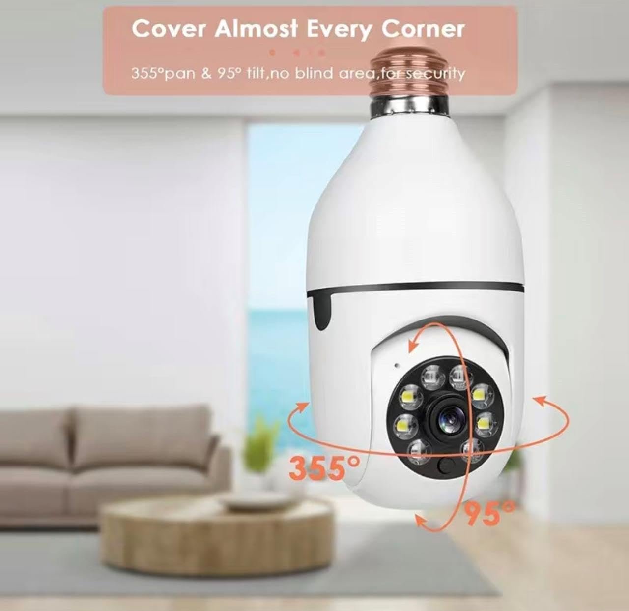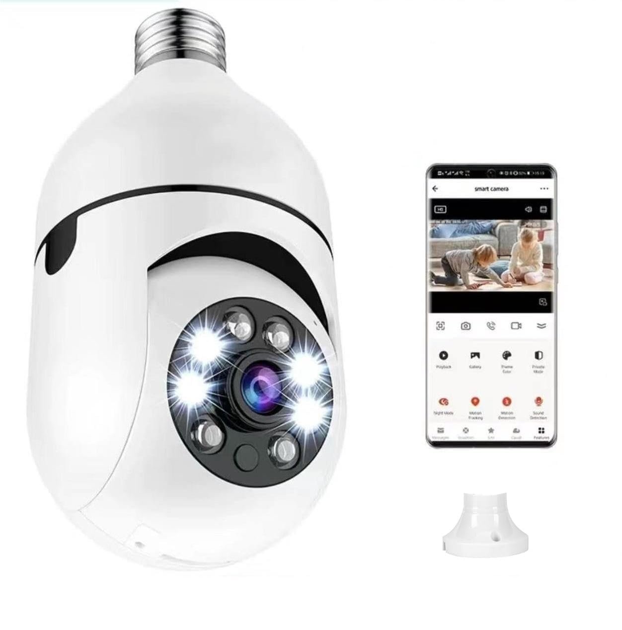 Smart bulbs 360-degree wifi camera can cover every corner of your home, super IR LEDs and Light Bulbs for Night Vision Up to 20ft. Color night vision lightbulb camera provides 1080P FHD clear picture/video even at night!
