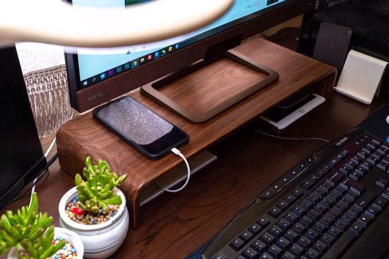 ★ SELECTED HIGH QUALITY MATERIALS: Walnut Sheesham Wood Computer Stand, 18W x 8D x 3.1H inches Allows you to leave enough space under your monitor. Recommended for those who have desk space.