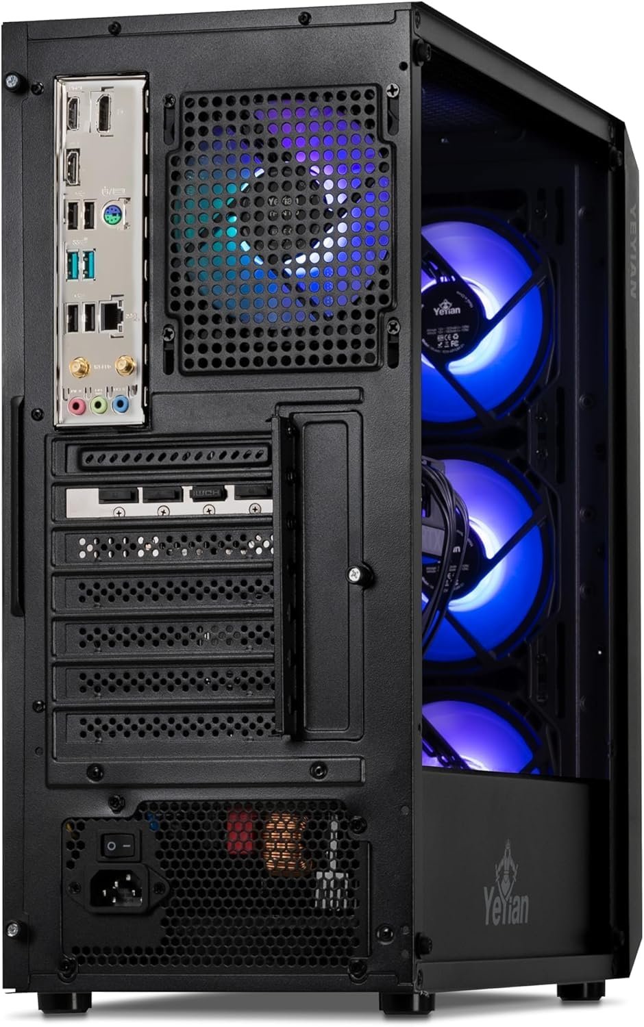 Stylish Design: The sleek black chassis with vibrant RGB fans creates a captivating visual spectacle, perfect for any gaming setup.