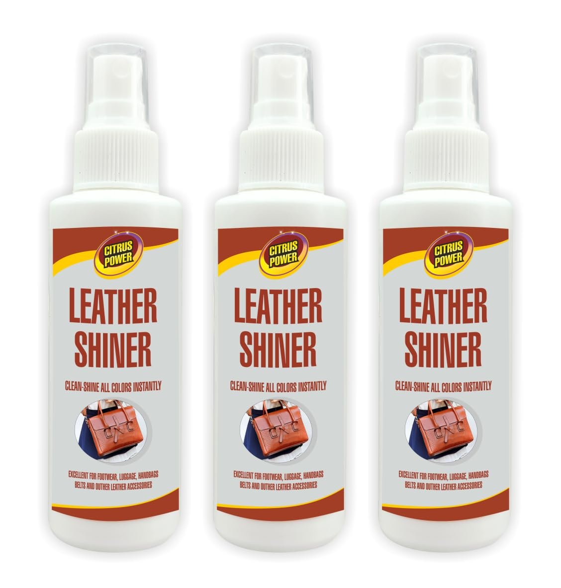 CITRUS POWER® Leather Shiner The Best Leather Shiner for Vinyl and Leather Apparel | Furniture | Auto Interior | Shoes and Accessories 100ml Pack of 3