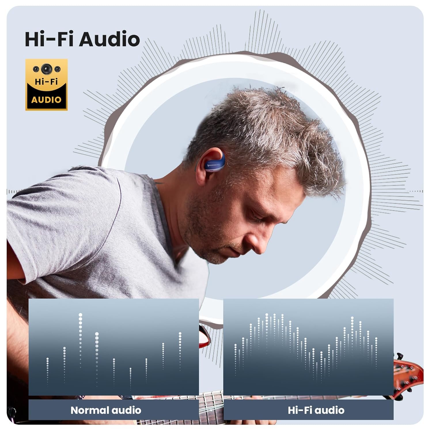 🌐ULTRA-COMFORTABLE and SECURE FIT: Experience the lightweight comfort and stability of our open-ear headphones. Featuring a non-intrusive design and soft, flexible ear hooks for a perfect fit—ensuring that you can wear them all day without discomfort. The unique Dolphin hook delivers a snugger seal and a more stable position in the ear canal, reducing the likelihood of these wireless bluetooth earbuds slipping out during intense motions