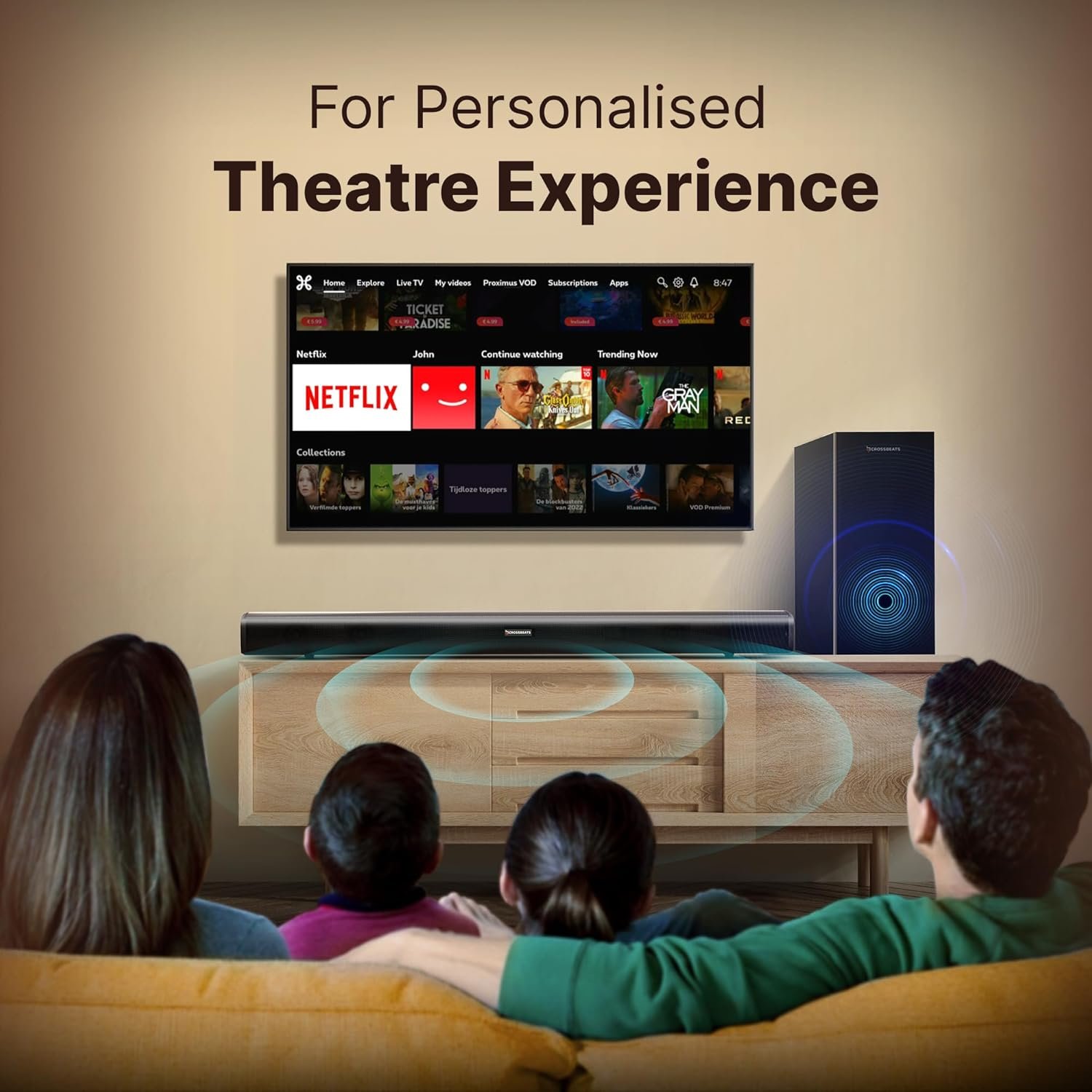 🎶Spatially Tuned Acoustics: This wireless home theatre from the house of Crossbeats has a badge of serious engineering on it, producing impeccable audio powered by its 200W speaker setup, it can bring in the captivating audio of the spatially tuned acoustics similar to many premium ANC earbuds.