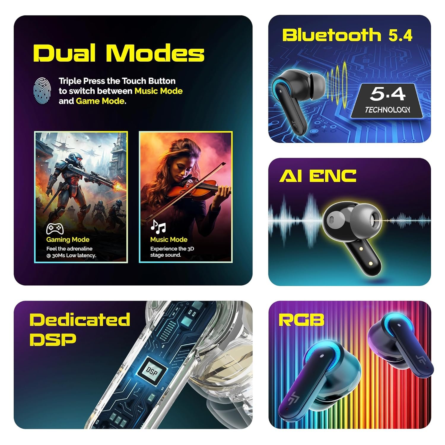 🔋【100 Hours Play Time 】E-Sports/Music Dual Mode, A Single Earbuds Gives You A Full 10 Hours Of Listening, While The Charging Case Extends It To 100 Hours Of Playtime, So You Have Enough Juice For Your Gaming Sessions
