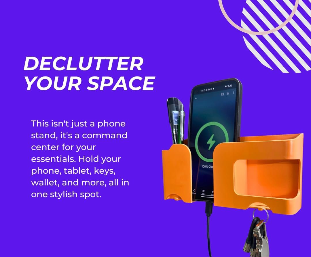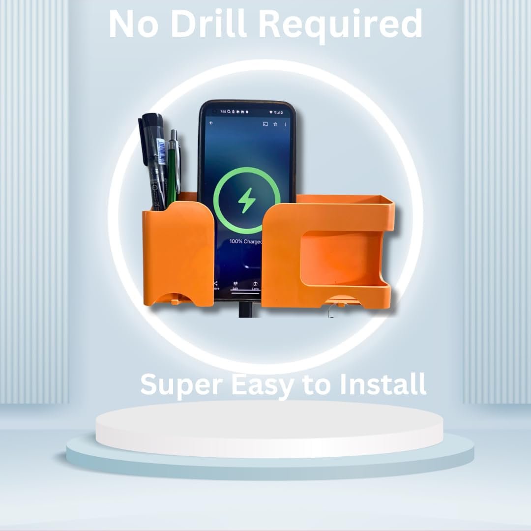 This wall stand is not only a For mobile, but also use for Store Tv, Air Condition Remote, Store Toothbrush, Toothpaste Store in Baath room. It is good Stationery like Sticky Notes, Pen in Office, Home tables, Built-in charging jack for easy charging, anti-slip mat on the edge to prevent the phone and tablet from falling.