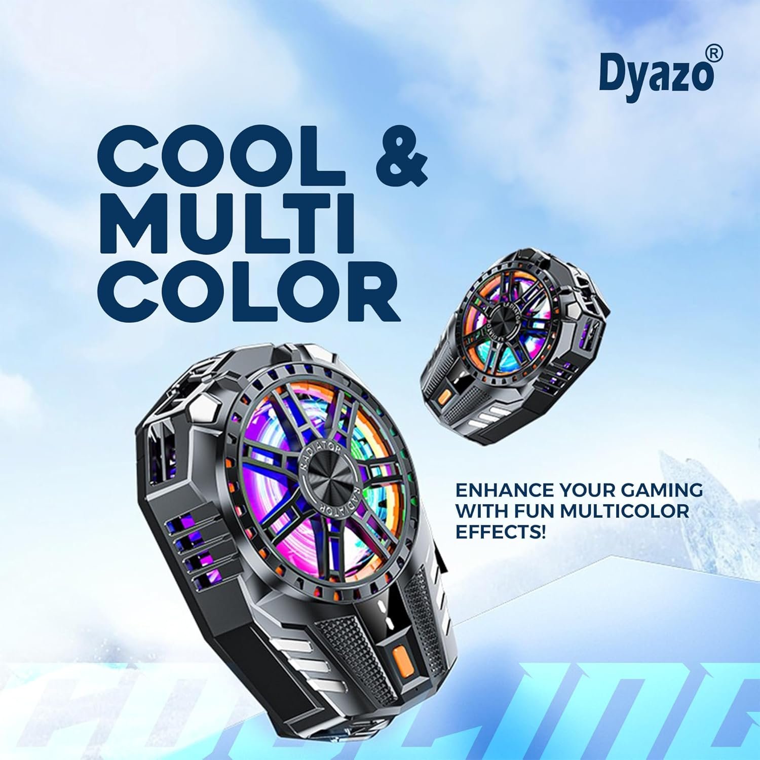 LOW NOISE: The Dyazo RGB light mobile cooler radiator fan adopts a 30 Decibel noise reduction design. This gaming mobile cooling fan is super silent and wont effect u your game play.