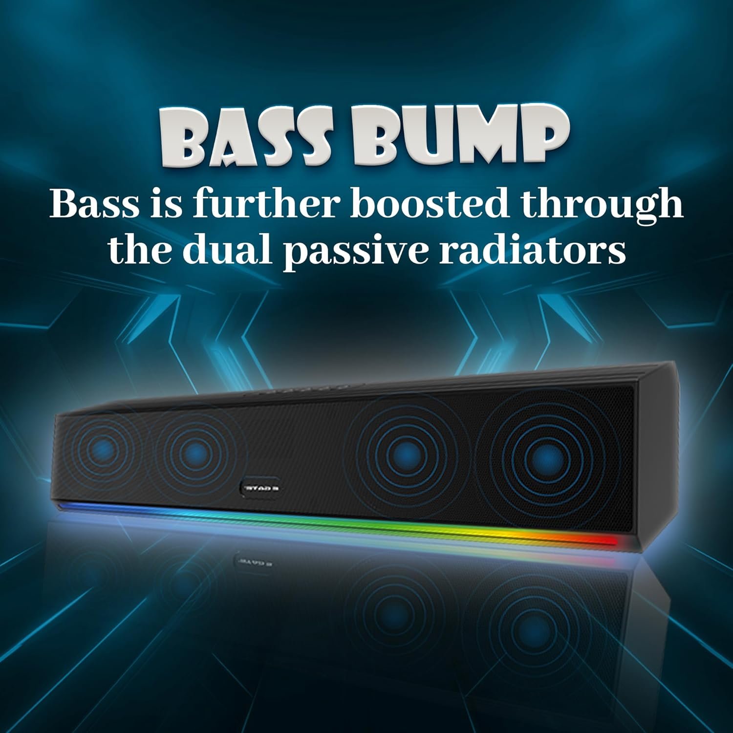 Truwatt : Enjoy the power of 24 Watt ( 5.3 cm – 12 watt dual driver) with 2 Passive Base Radiator for that immersivehigh bass experience.