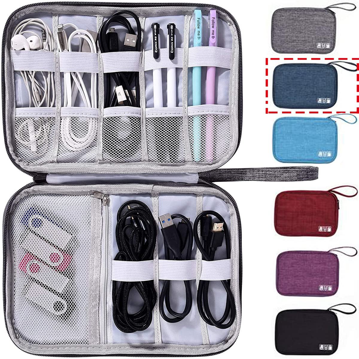 💌Multiple Usage: It can hold charger, batteries, power bank, hard drive, memory cards, cables, external driver, flashdrive, chargers, several USB cables, memory cards, smartphones and such. also good for kids’/students stationeries, like pen, pencil, highlighter, gel pen & eraser.