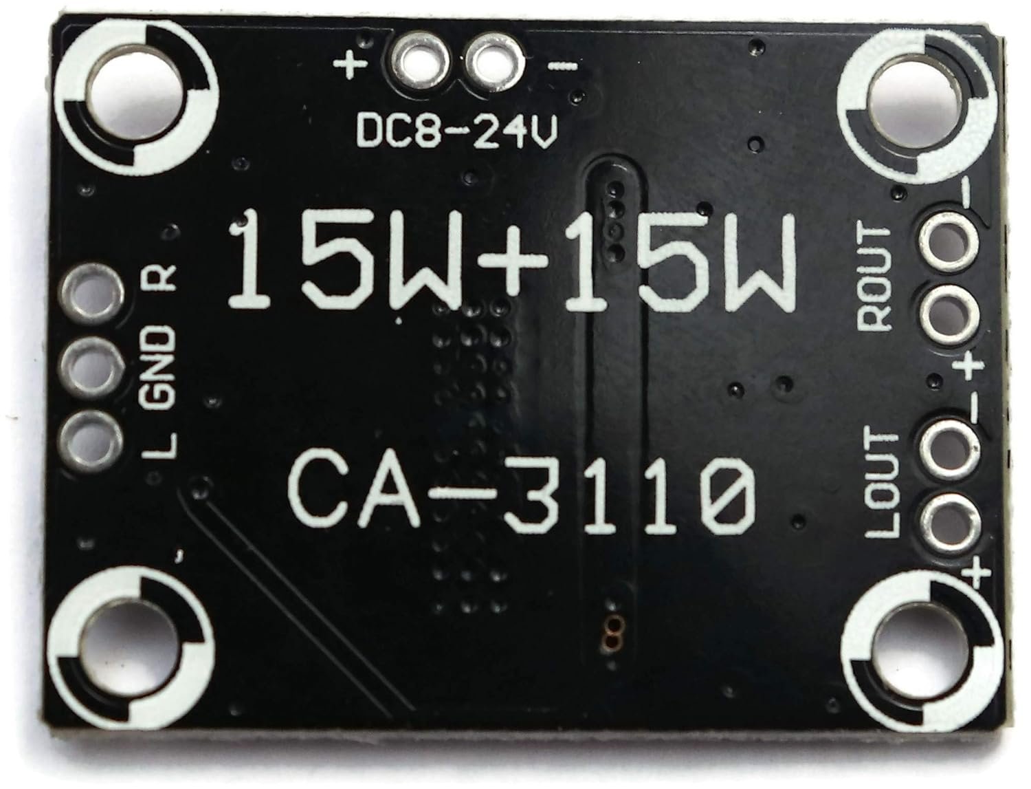 TPA3110 2X15W Digital Audio Stereo Amplifier Module Board Features: Amplifier Chip:TPA3110 Output Power:15W x 2 Working Voltage: DC 8-24V Working Current: Max:3A