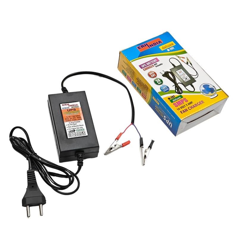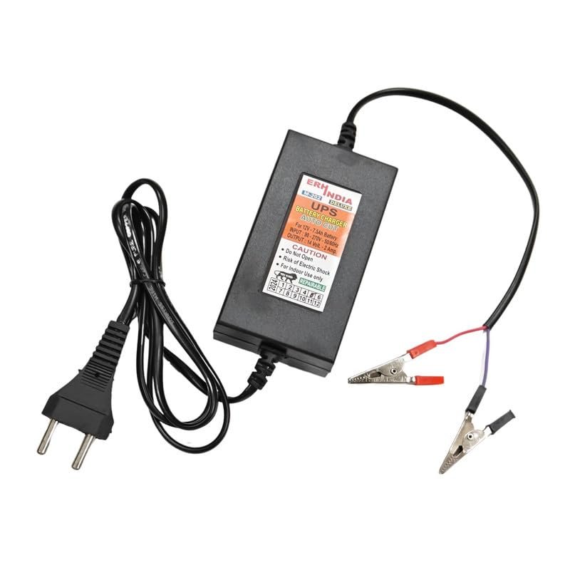 ERH India 12V Bike Battery Charger UPS Adaptor 14V 2Amp DC SMPS 12v 7 Ah with Battery Clip for Bike, Car, Scooty and Electronic Battery Purpose etc