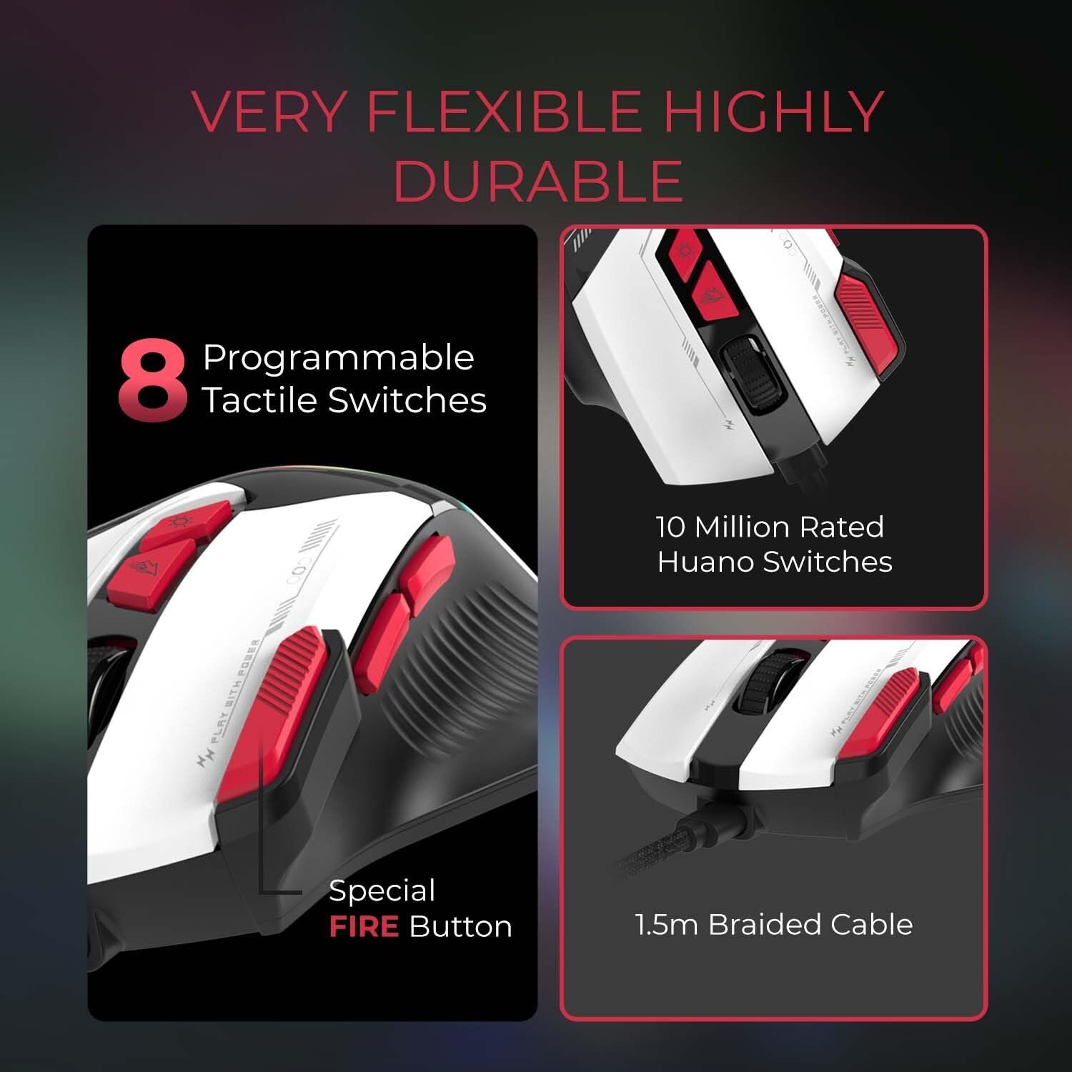 Customise your gaming setup with 16 million Prism RGB lighting options with music sync mode, and take advantage of 8 highly tactile buttons, including a specially placed fire button for instant action.