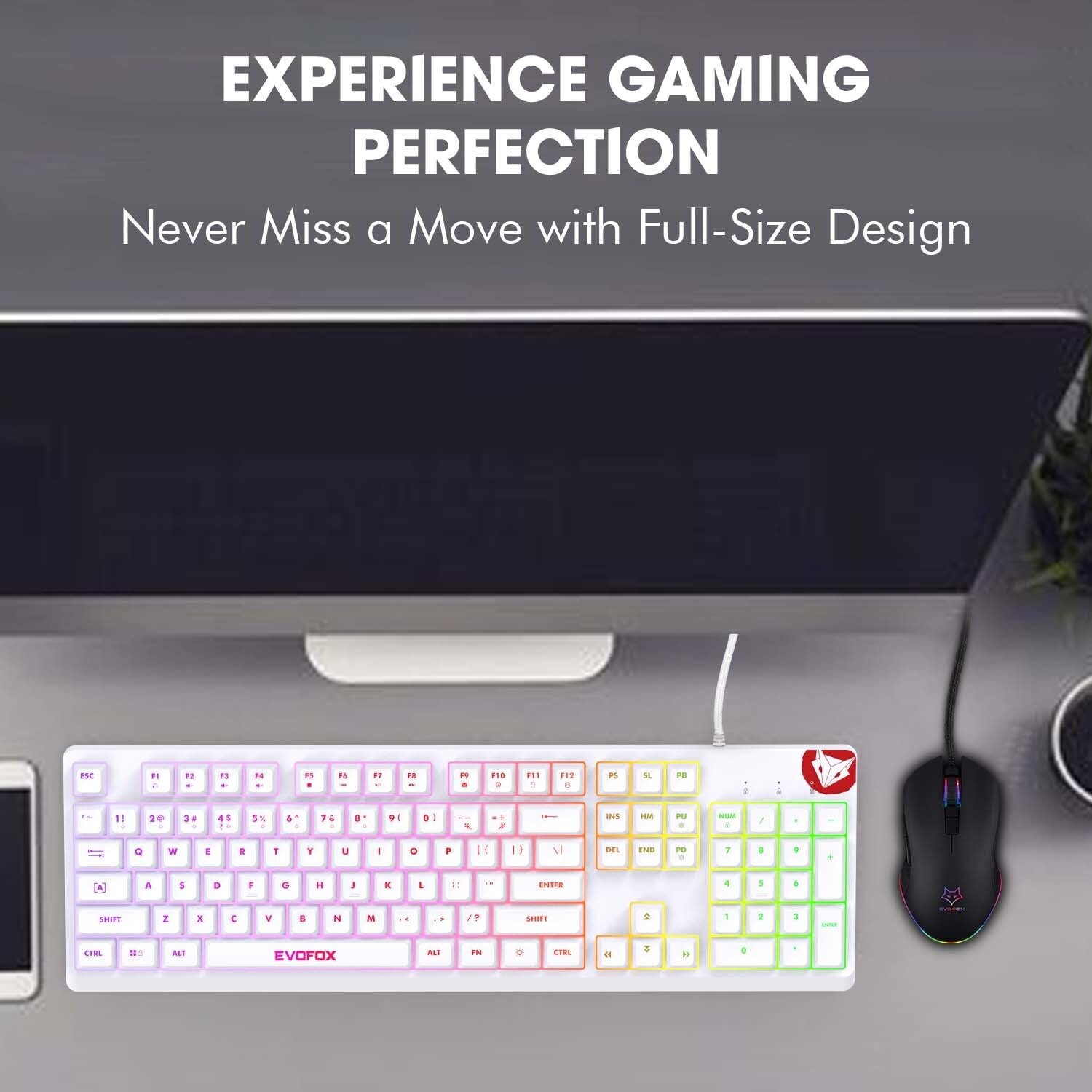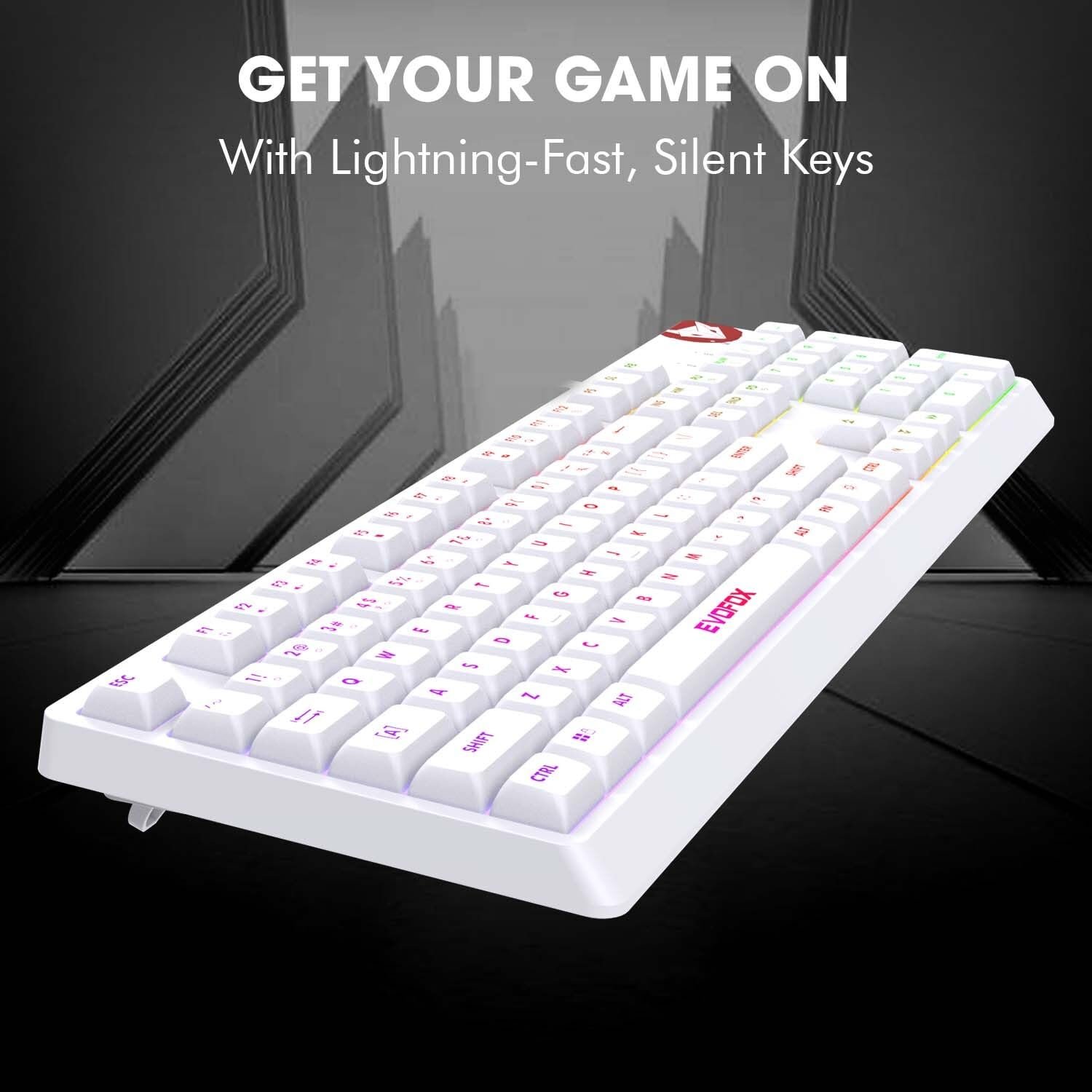 The New EvoFox Deathray is a Full-Size Membrane PC Gaming Keyboard equipped with Prism RGB, 8 Custom Lighting Modes, Windows Lock Key functionality all housed in an ergonomic light-weight battle-ready casing!