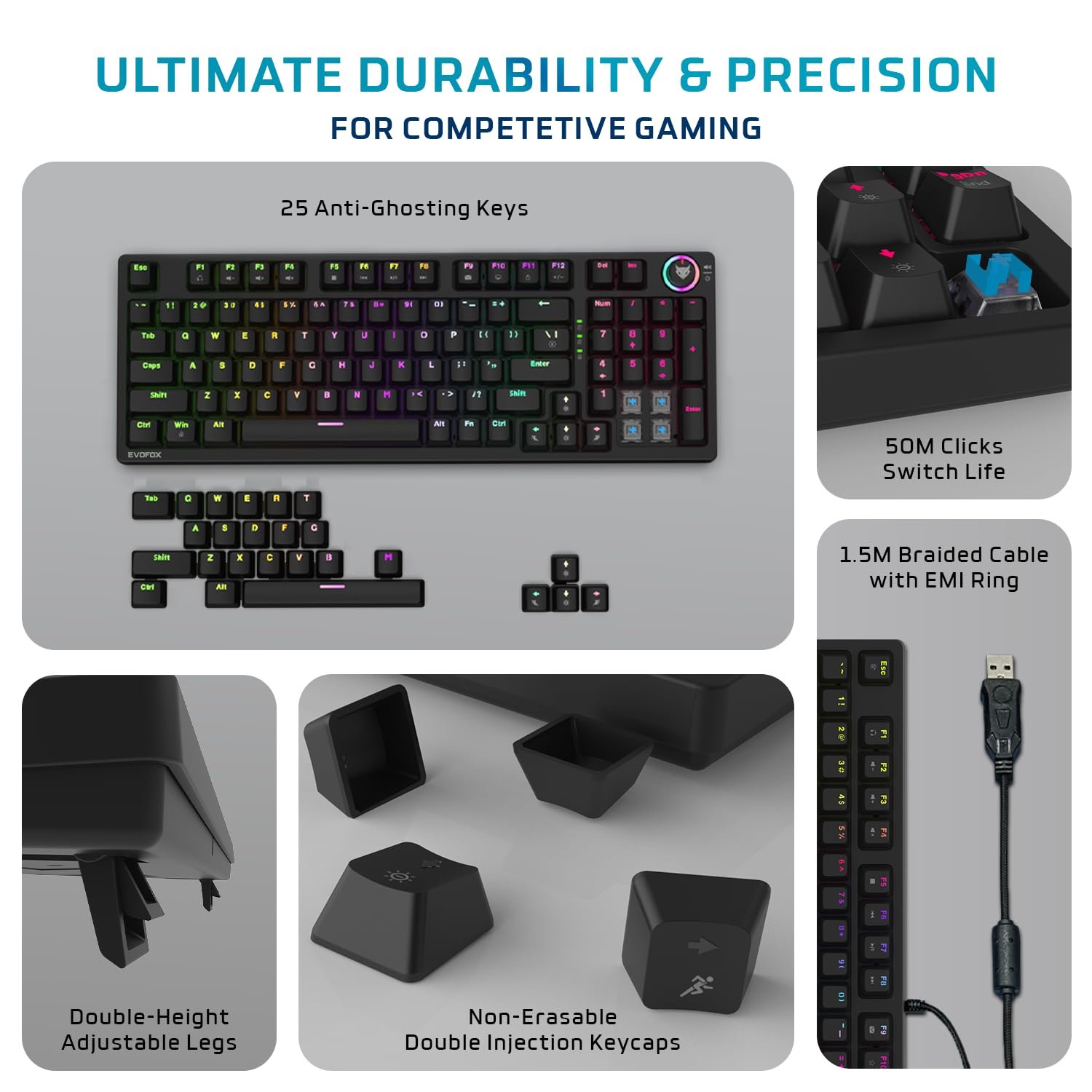 Vivid Aesthetics, Enduring Quality: Immerse yourself in 13 dynamic lighting effects, while the non-erasable double injection keycaps offer a perfect blend of durability and style. With 25 anti-ghosting keys and a 1.5m braided cable, expect flawless execution and a dependable link for uninterrupted gameplay.