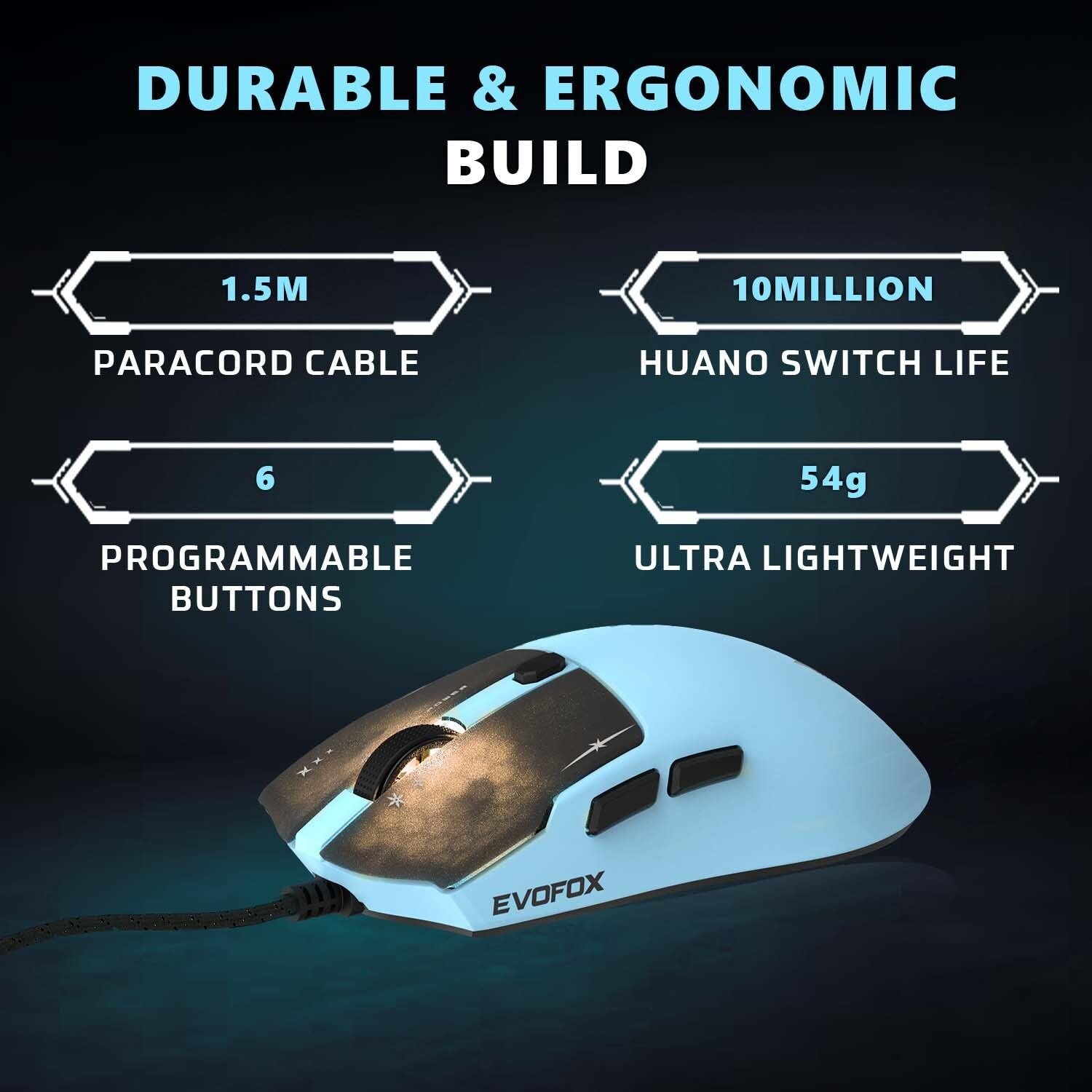 Enhance your gaming experience with the EvoFox Ghost Air’s 6 fully programmable buttons. Assign custom actions, shortcuts, or macros to each button for unmatched efficiency. Whether it’s quick in-game moves or boosting productivity, every click is tailored to deliver optimal performance.