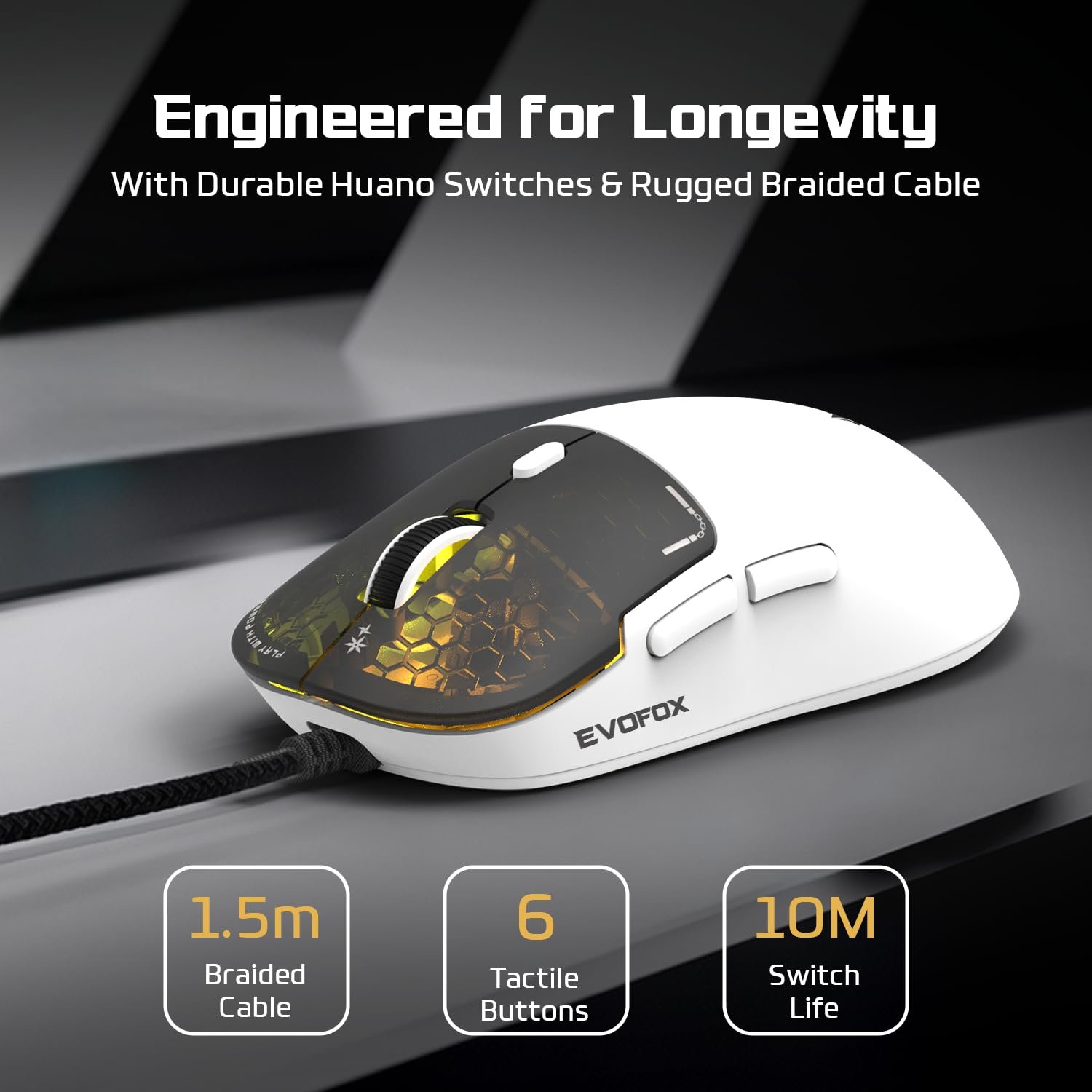 Enjoy uninterrupted gameplay with the EvoFox Phantom Air’s ultra-flexible braided cable. Designed for durability and low drag, the 1.5m braided cable with EMI shielding ensures smooth, tangle-free performance for intense gaming sessions.