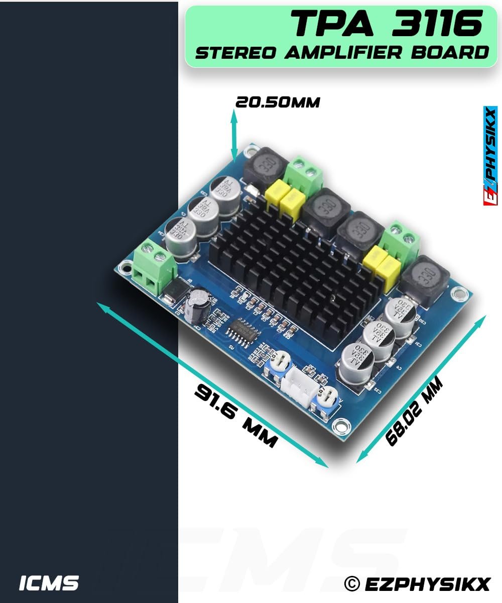 Be the first to review “EZPHYSIKX TPA3116 | TPA 3116 Stereo Amplifier Module, 120 watt, DC 4.5-26V, DIY Car Vehicle Computer Home Theater Audio System with Integrated speaker Protection Circuit. (TPA 3116 STEREO.)”
