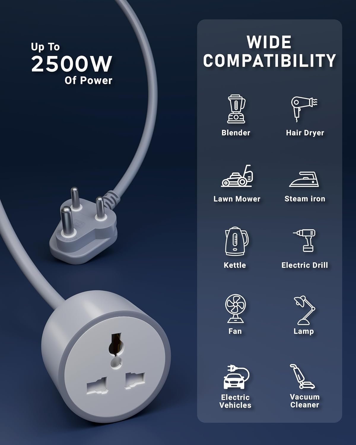 ▶UNIVERSAL COMPATIBILITY: Ideal for home, office, kitchen, outdoor garden and A Wide Range Of Low & High-Wattage Home, Office, EV two-wheeler And Kitchen Appliances, Such As Toasters, drills, Coffee Makers, Blenders, Mixers, Kettles, Iron, Angle grinder, Blower, Water Purifiers, Chimneys, Televisions, Vacuum Cleaners,Treadmills, Dryers,Pressure Washers, Grills,lighting, lawn, garden equipment decoration, phone chargers, vacuum cleaners, and other household electronics need a little extra length.