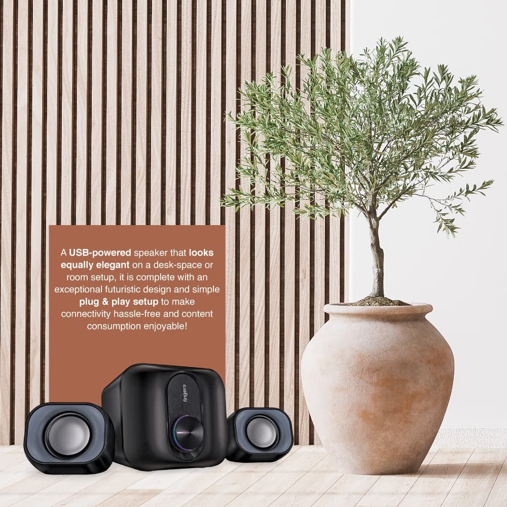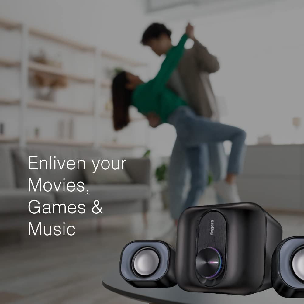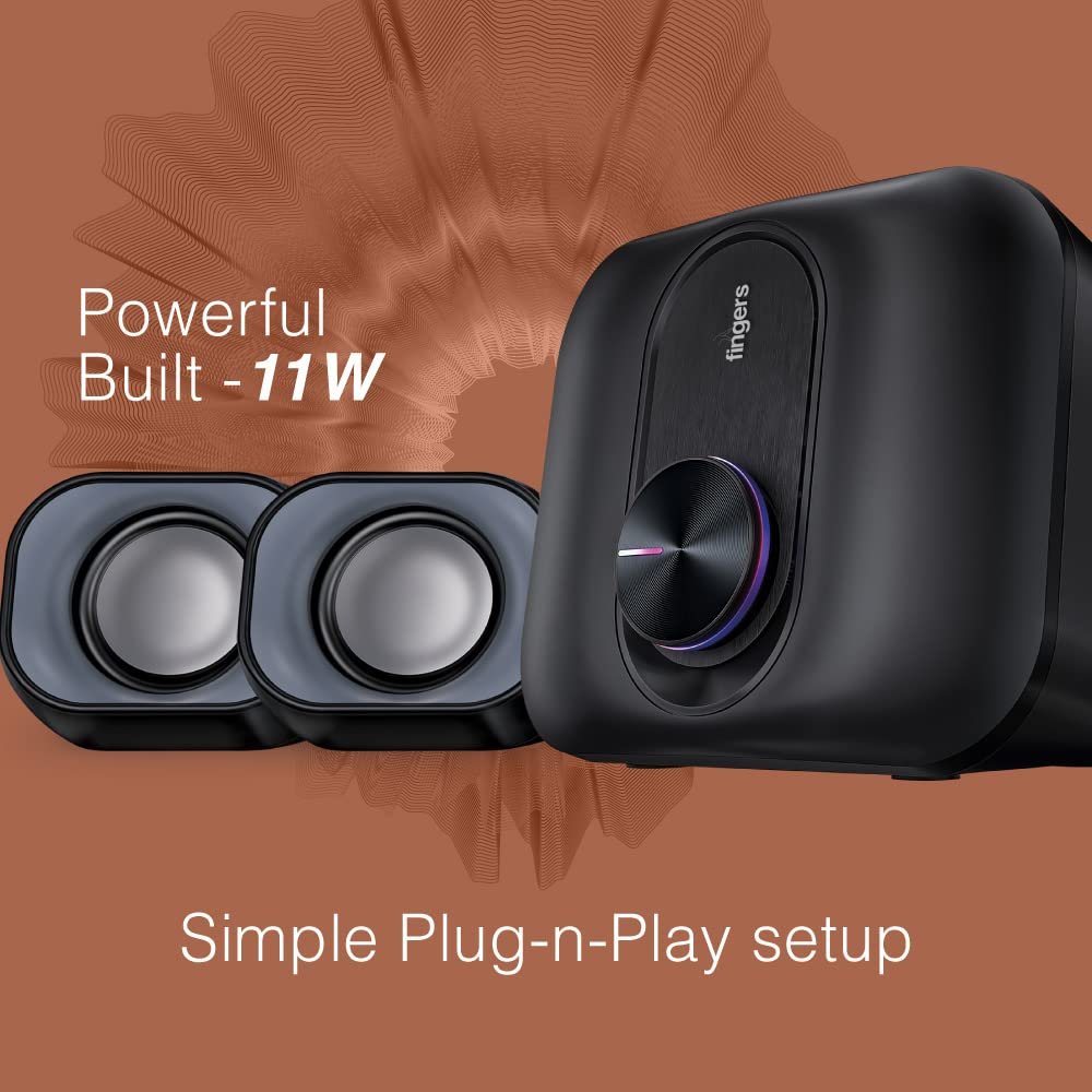 FINGERS StereoBeats 2.1 Channel Multimedia Wired Speaker (USB Powered with 3.5 mm stereo input | Powerful 11 Watts | for Computer PCs & Laptops) – Rich Black