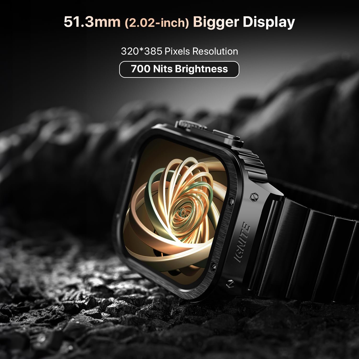 Limitless Visuals: The Maverick smartwatch stuns with its expansive 2.02″ IPS big screen, delivering vibrant colours and razor-sharp detail at 320×385 pixels resolution, ensuring your digital world comes alive on your wrist.
