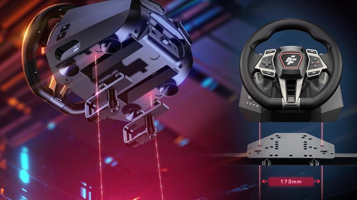 Up to 900° wheel rotation, for optimal racing precision Automatic centering function