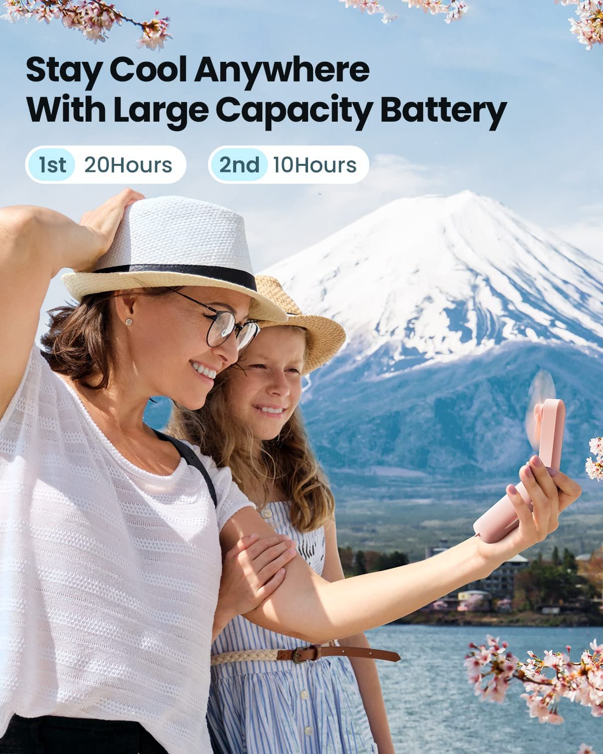 【Long Cooling Time】Up to 24 hours cooling time in one full charge. Super long battery life allows you to enjoy it while travelling, commuting, working and any other outdoor activities. This mini handheld fan is USB rechargeable through regular usb socket, laptop, car charger.