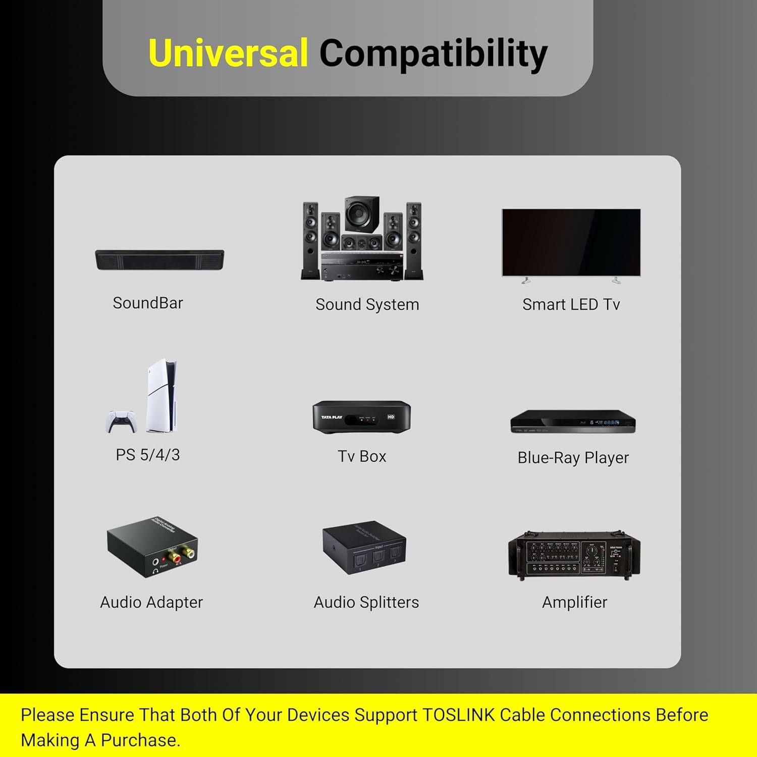 Excellent Compatibility : Optical Cable,Compatible With Devices Equipped With Optical Audio Ports, Such As Soundbars, TVs, Game Consoles,Home Theater Systems.Receiver, Amplifier’s, Audio Processor, Or Digital-To-Analog Converter
