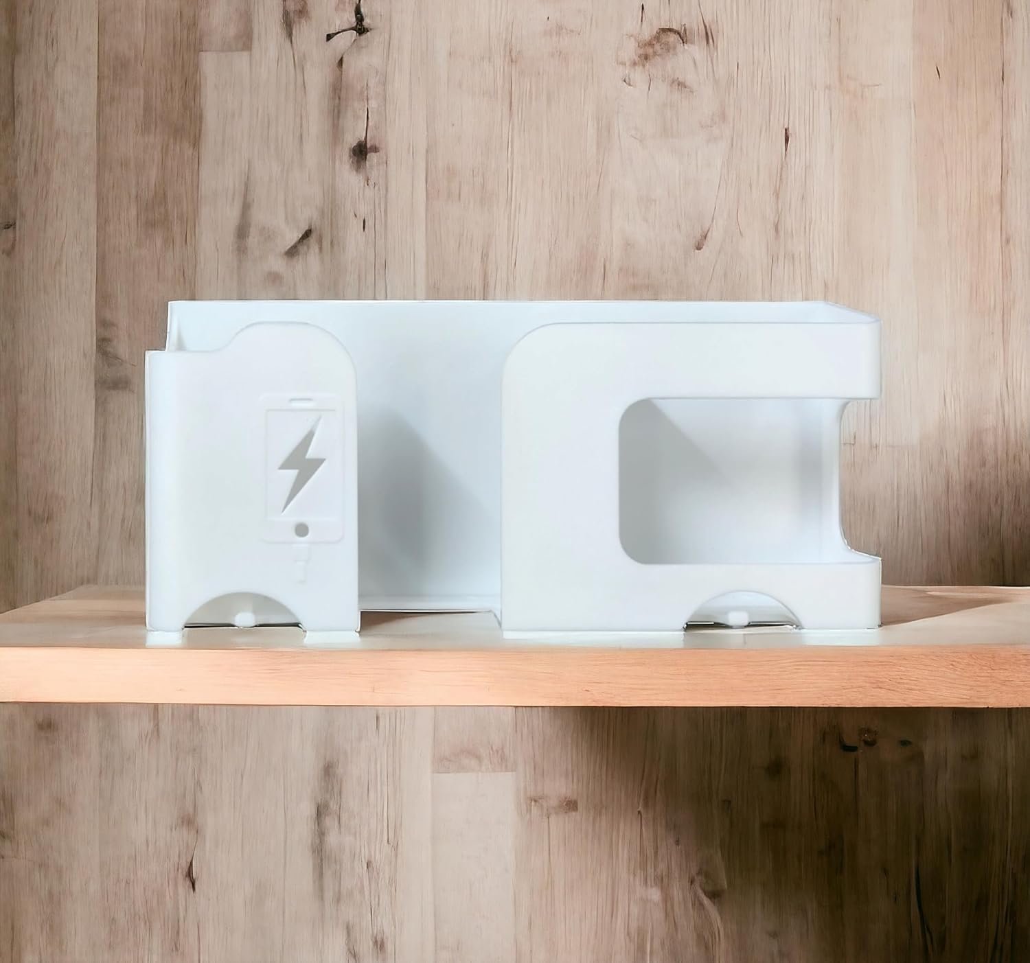 White Plastic Wall Stand – Keep remotes & phones organized, lightweight & durable wall mount.