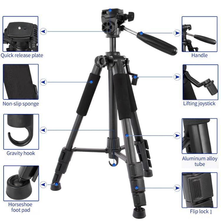 Compact and Portable: Designed with a folding mechanism, this tripod is lightweight and convenient for travel or outdoor use.