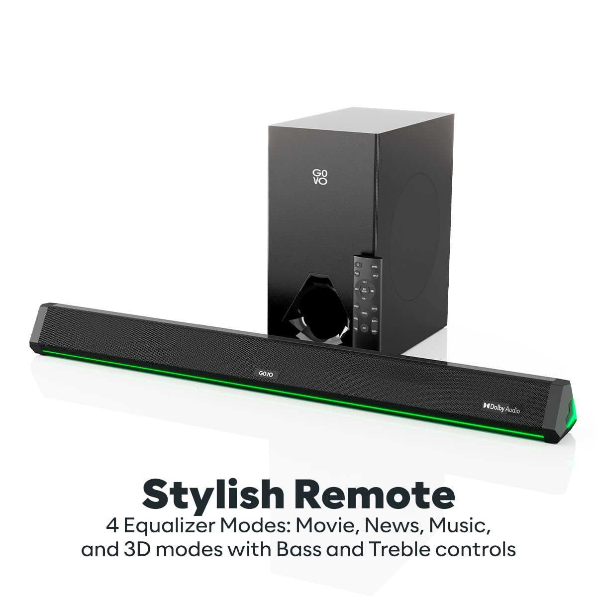 Dynamic LED Lights: Get the acoustic experience to the next level with the most stylish LED lights in the GOVO’s signature color 4 Equalizer Modes: Switch through Movie, News, Music & 3D modes, and enjoy your home cinema experience