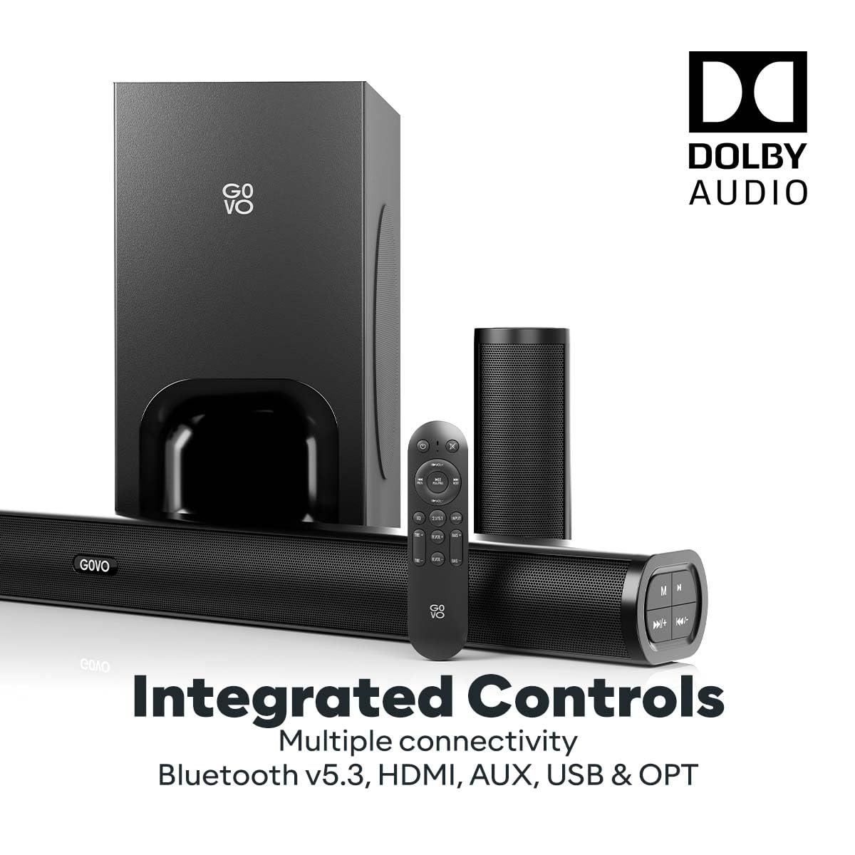 Dynamic Design: Get the acoustic experience to the next level with the most stylish design ;3 Equalizer Modes: Switch through Movie, News, Music and enjoy your home cinema experience.Remote control: Adjust the Bass, treble & volume with the most stylish remote control; Multiple Connectivity: Connect with HDMI (ARC), AUX, USB & OPT; Bluetooth V5.3 : Connect automatically your mobile device and enjoy the music louder than ever; Integrated Controls: Control your music experience and pairing through the key panel on the soundbar