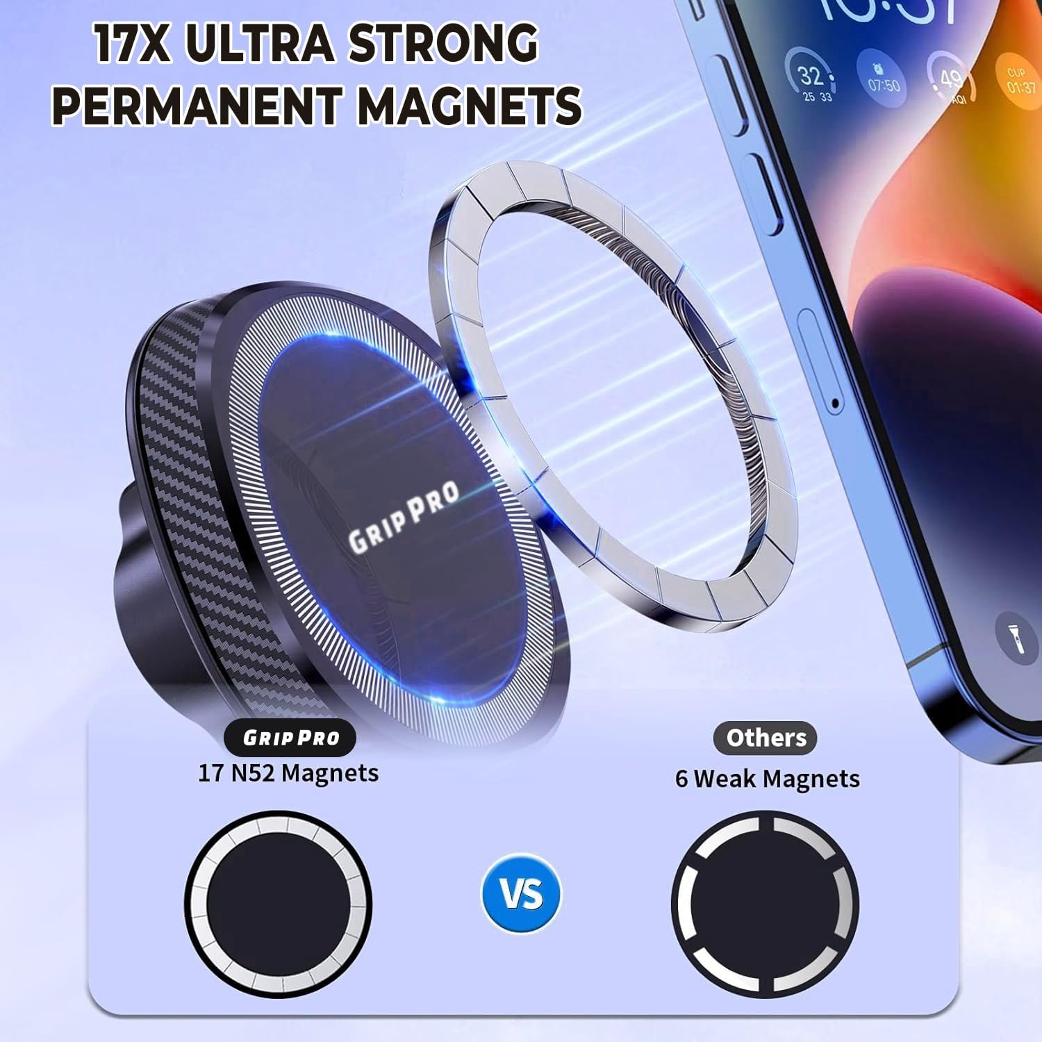 Designed for iPhone 14/13/12 Series – Thanks to its Super Strong N52 Magnets, this mount can hold your bare(coverless) iPhone 14/13/12 Pro Max Mini directly; The magnetic phone car mount is also compatible with Official MagSafe cases, no need to apply the additional metal rings.