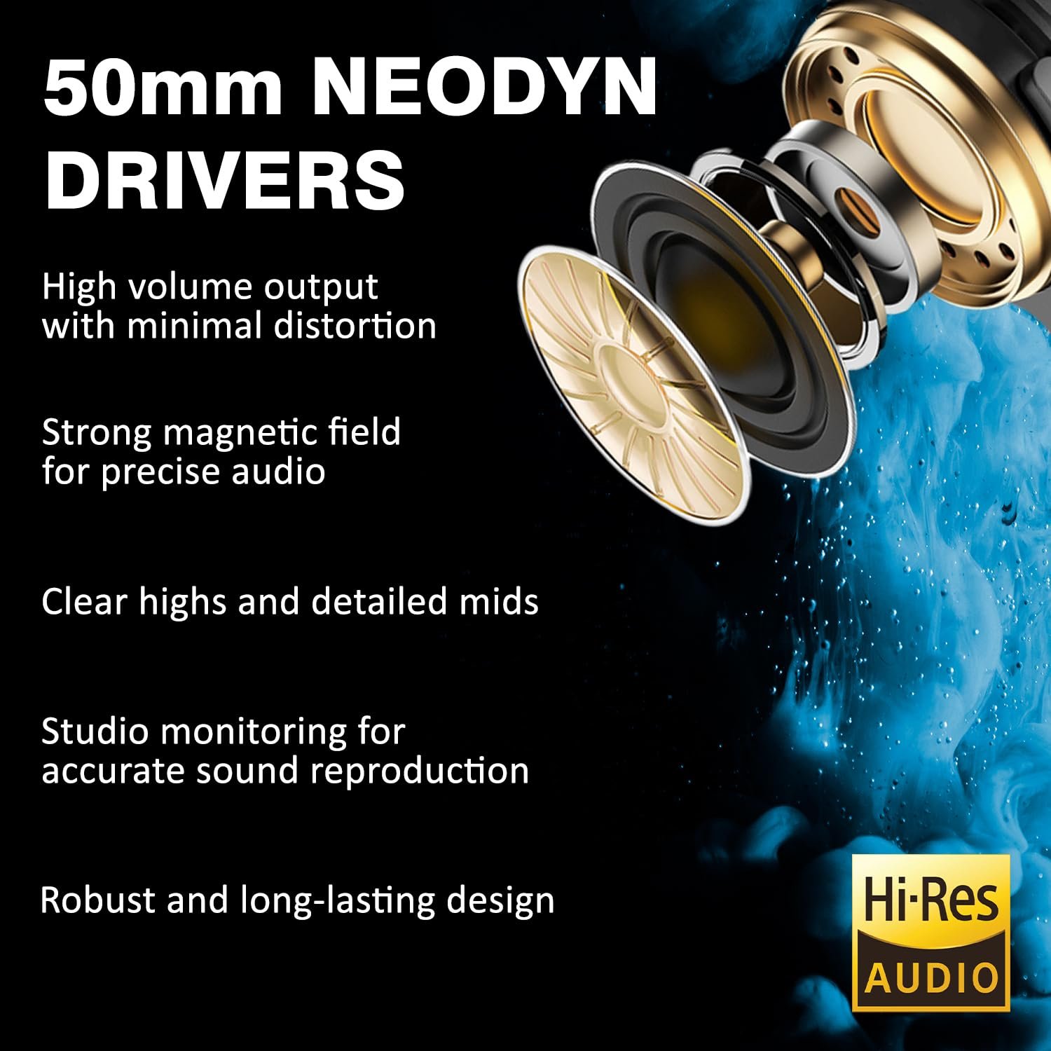 Studio-Grade Sound – 50mm neodymium drivers deliver powerful bass, crisp mids, and clear highs (20Hz-40kHz), perfect for DJing, mixing, recording, gaming, and music production.