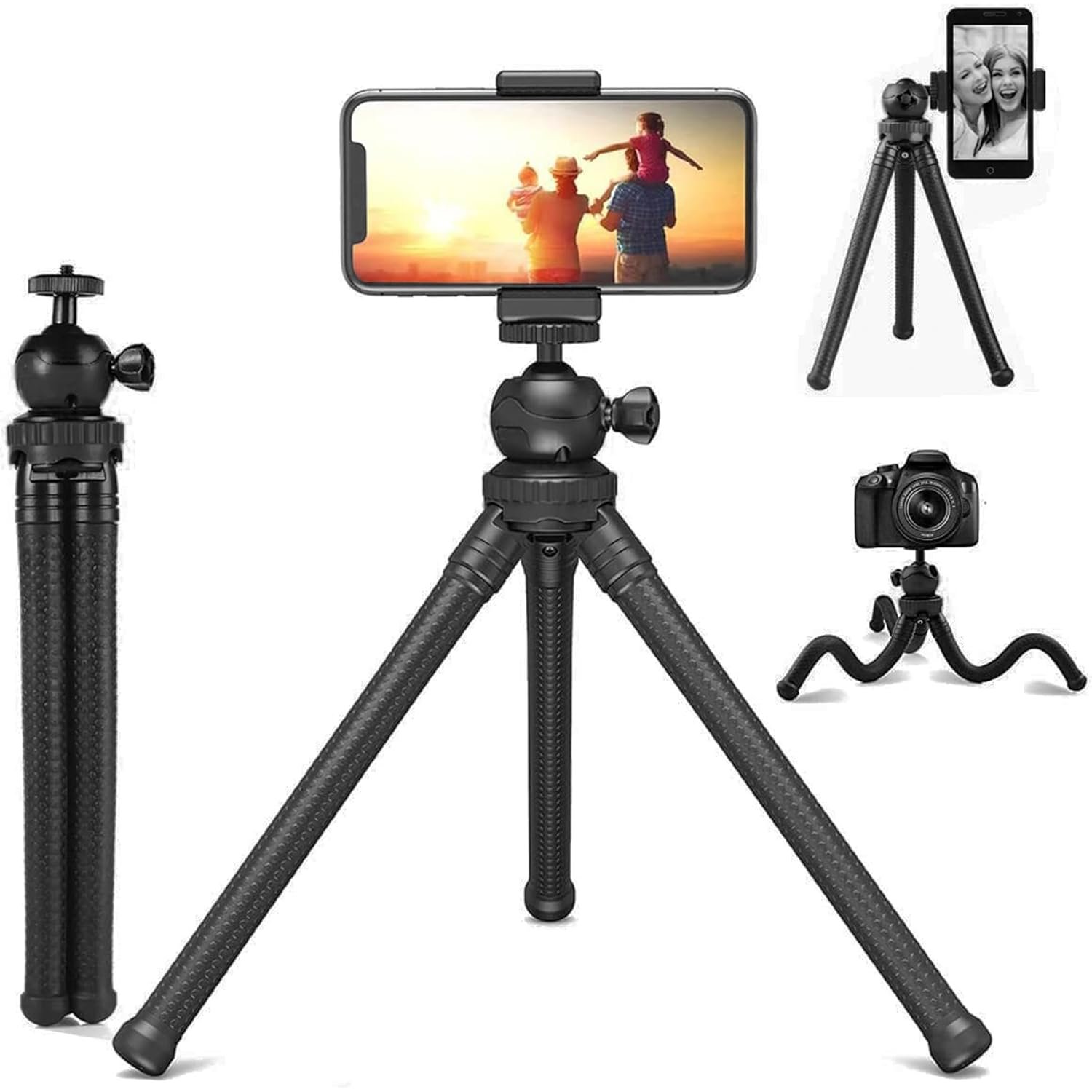 Portable & Lightweight: A portable design ensures that you can carry and use your mini tripods for mobile effortlessly throughout the day. ABS makes the mini tripod exceptionally lightweight and durable. It is perfect for a long day of gorillapod tripod shooting. Being a camera stand tripod you can also view your mobile phone or DSLR camera recorded videos in rough and unstable environments. With a peace of mind that your tripods for mobile, dslr camera and mobile phone will be safe.